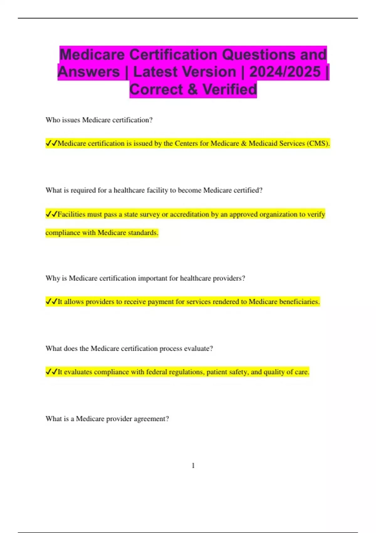 ✔✔Medicare certification is issued by the Centers for Medicare & Medicaid Services (CMS).