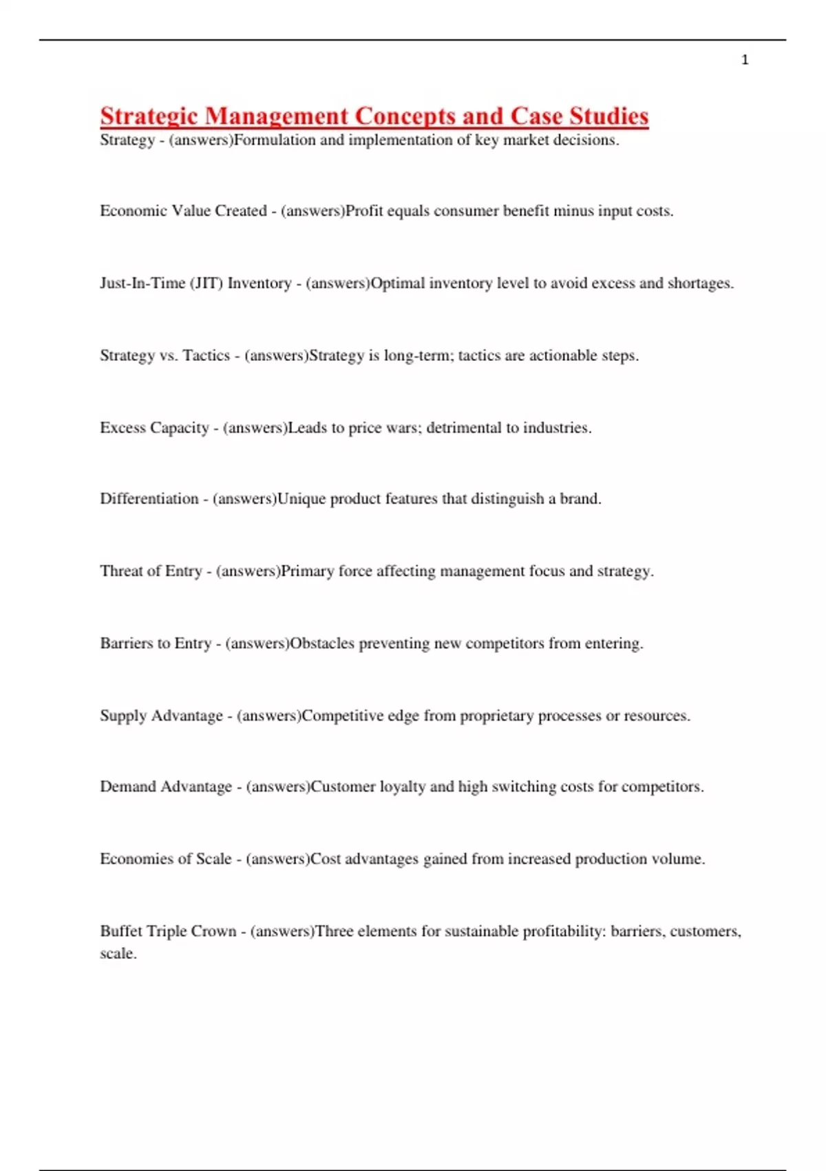Strategy - (answers)Formulation and implementation of key market decisions.