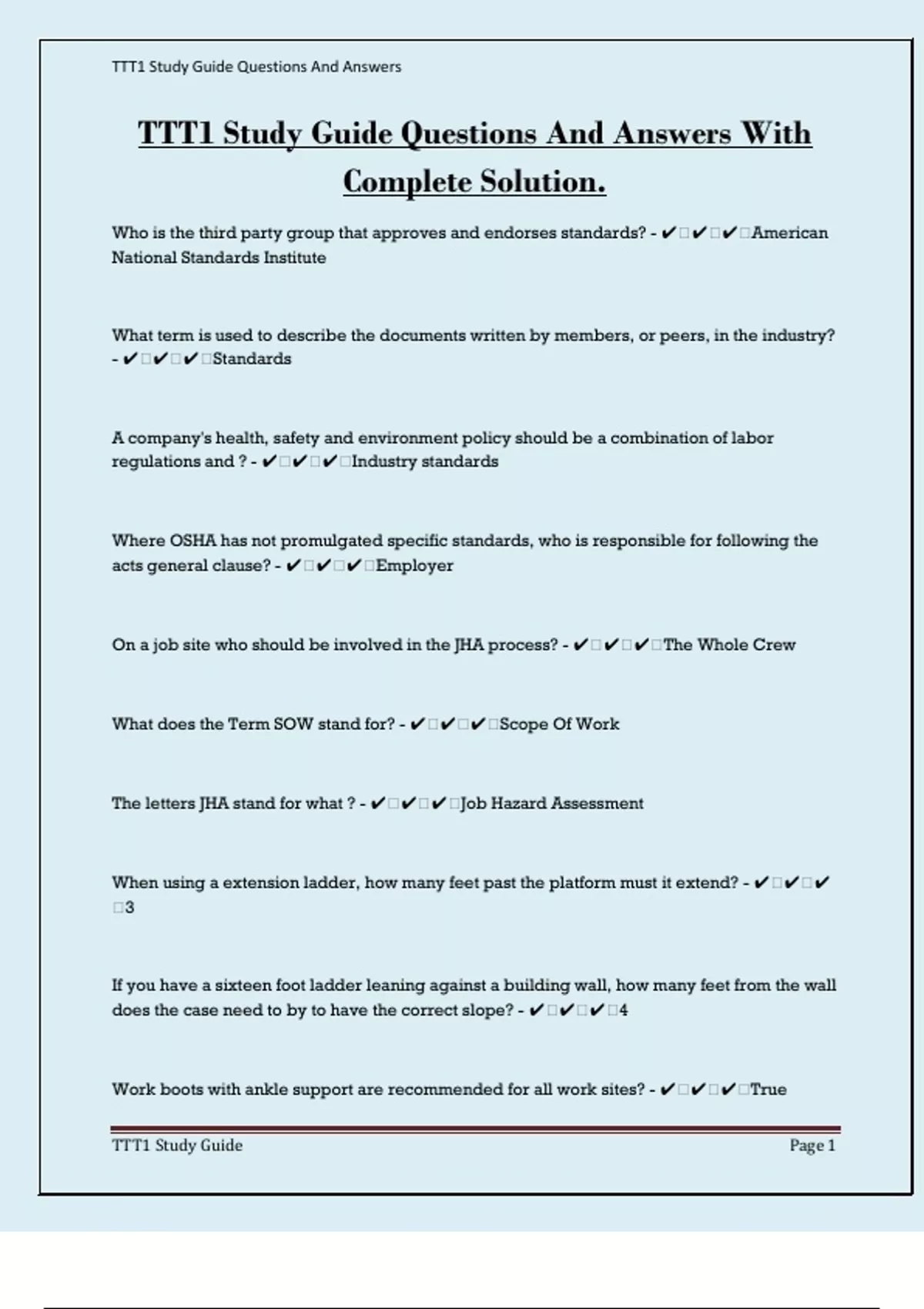 TTT1 Study Guide Questions And Answers With