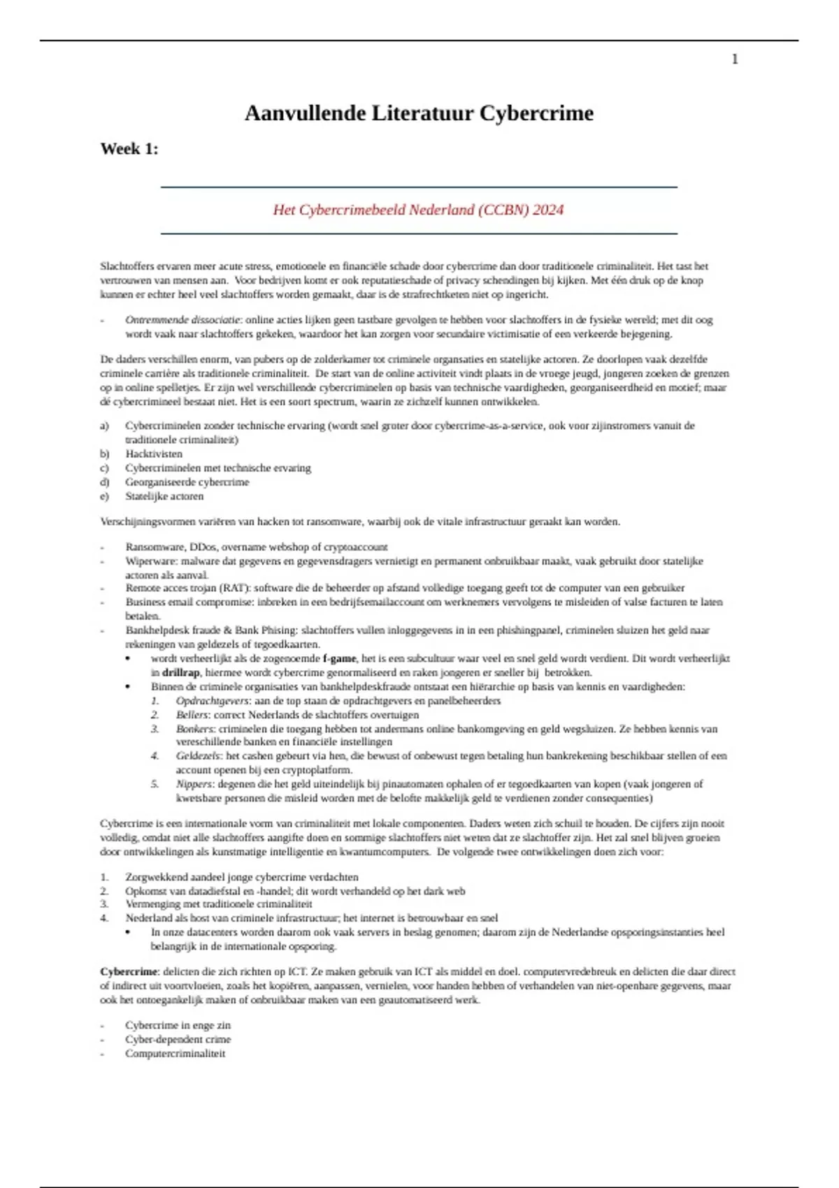 Aanvullende Literatuur Cybercrime
