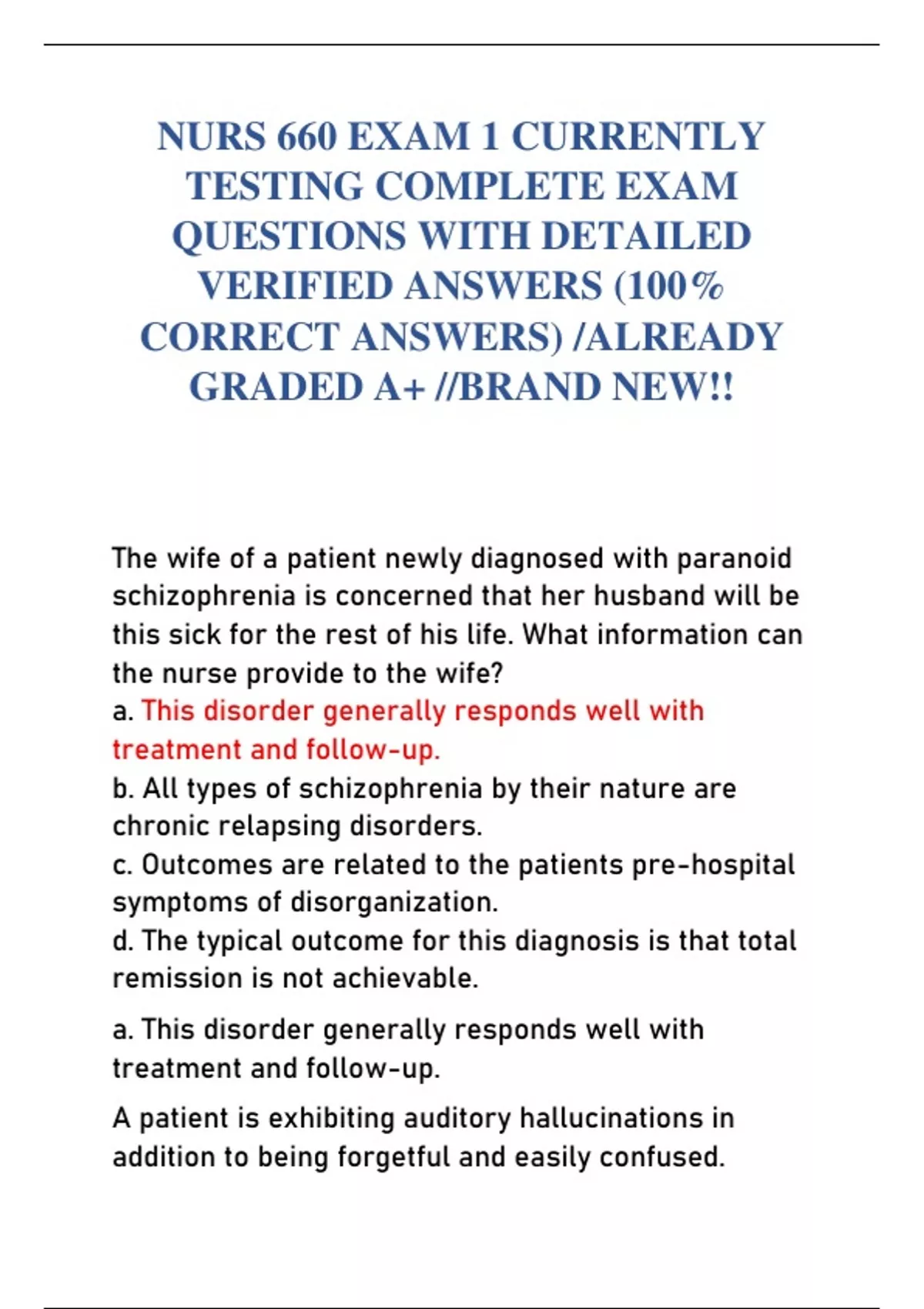 a. This disorder generally responds well with