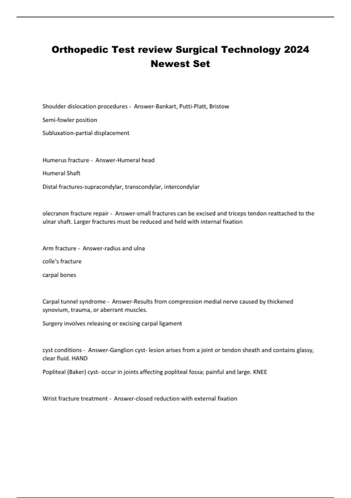 Orthopedic Test review Surgical Technology 2024