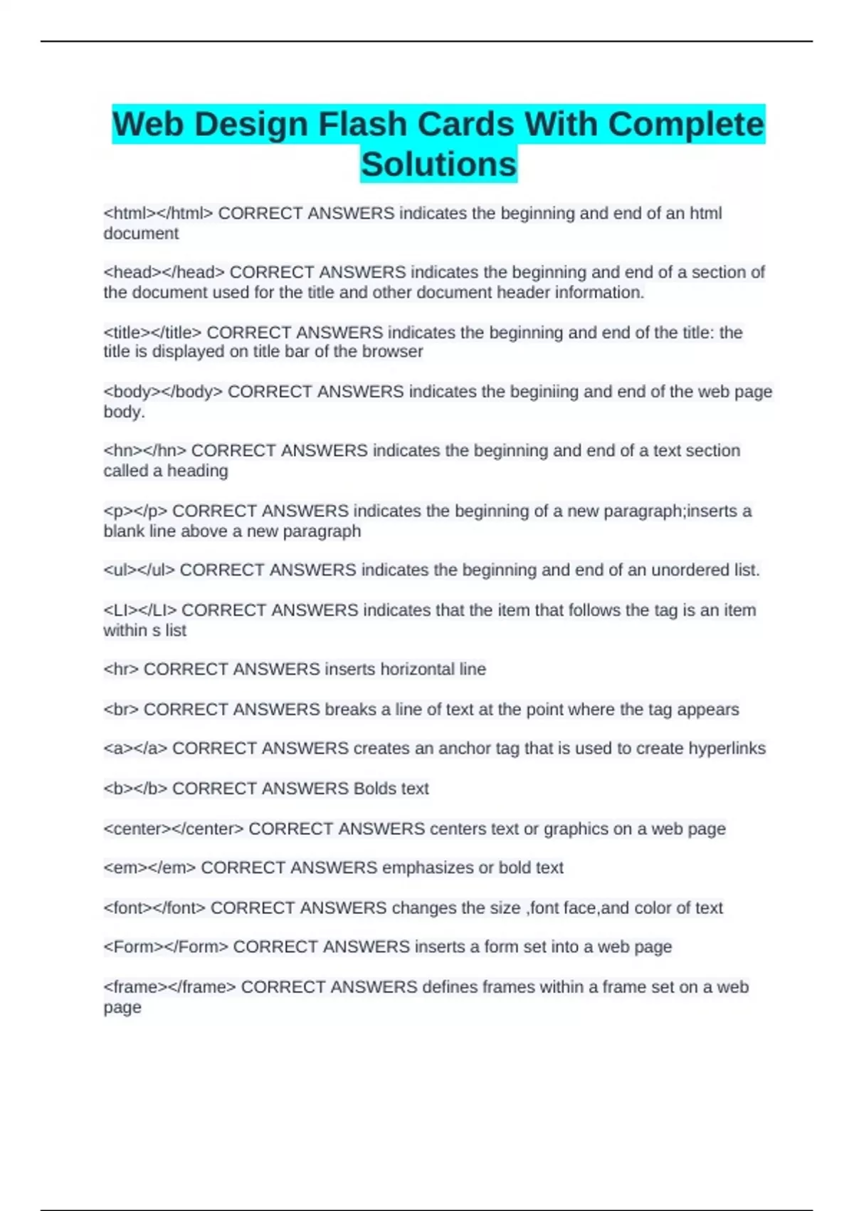 <html></html> CORRECT ANSWERS indicates the beginning and end of an html