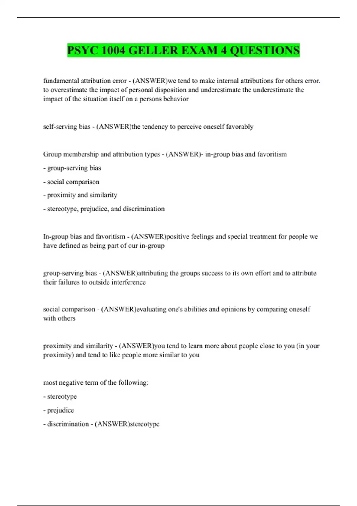 PSYC 1004 GELLER EXAM 4 QUESTIONS