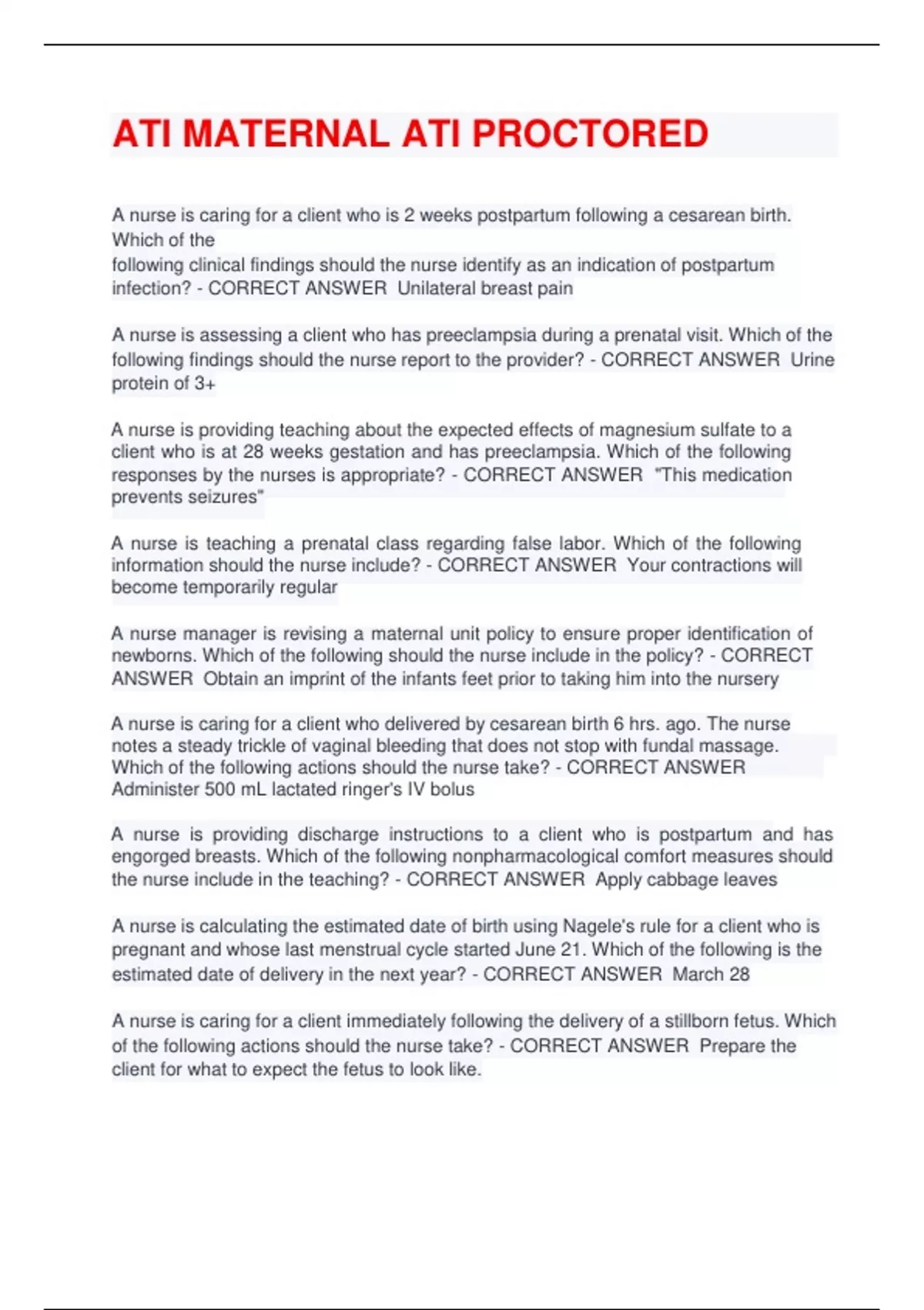 ATI MATERNAL ATI PROCTORED