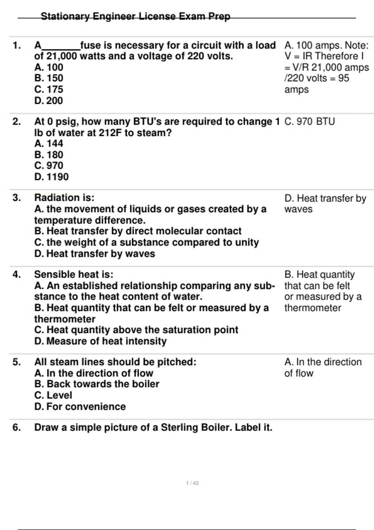 17. One boiler horsepower is equal to how many BTU's? B. 33,472 BTU