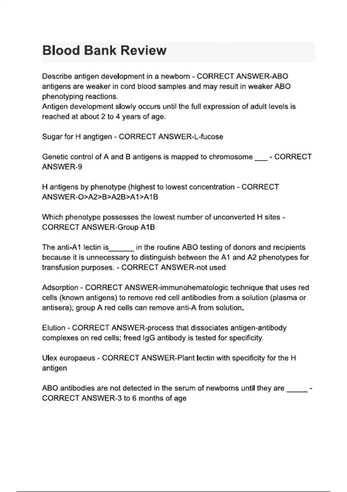 Exam of 6 pages for the course blood bank at blood bank (Blood Bank Review)