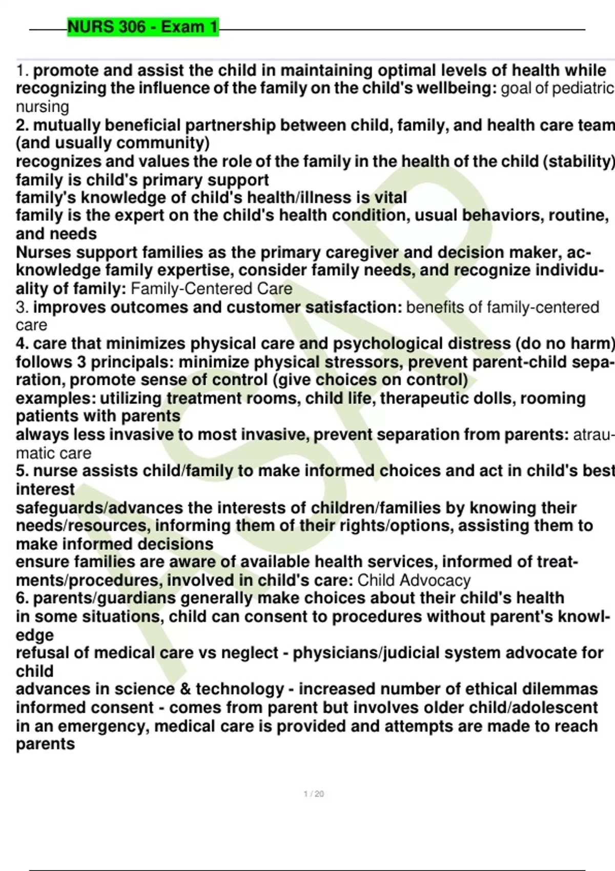, NURS 306 - Exam 1