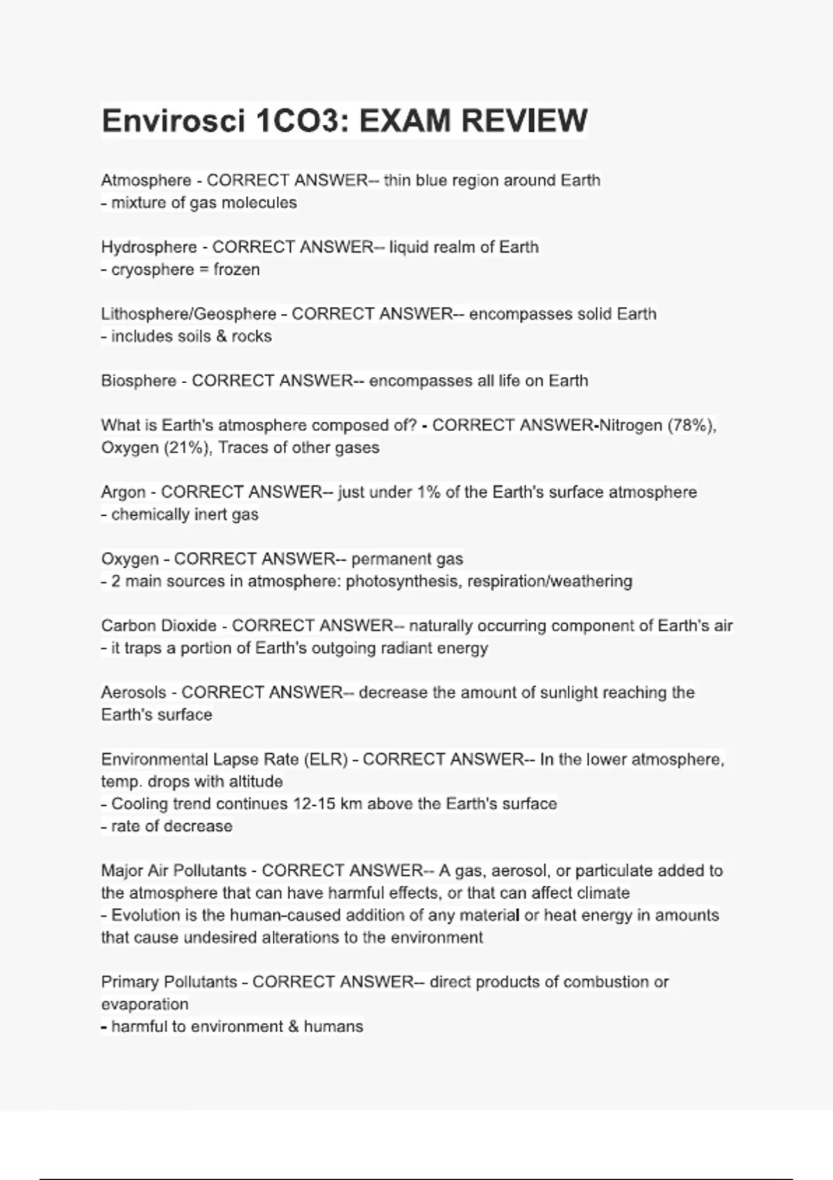 Envirosci 1CO3 EXAM REVIEW
