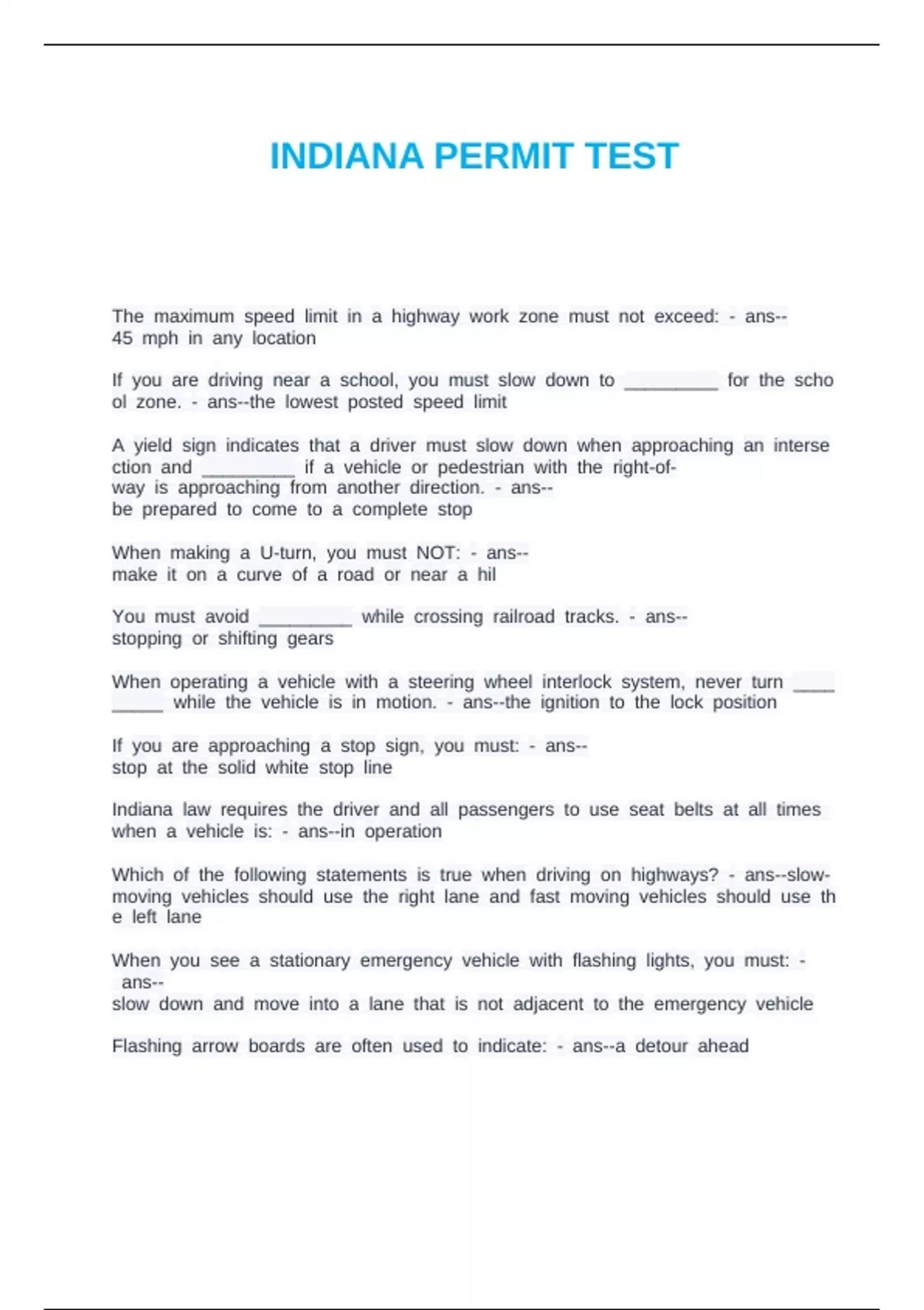 INDIANA PERMIT TEST.