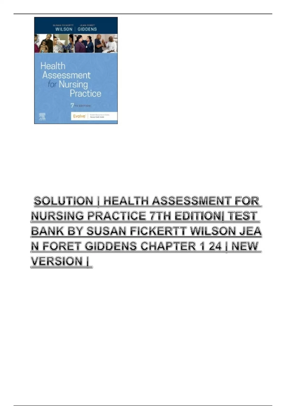 SOLUTION | HEALTH ASSESSMENT FOR NURSING PRACTICE 7TH EDITION| TEST BANK BY SUSAN FICKERTT WILSON JEAN FORET GIDDENS CHAPTER 1 24 | NEW VERSION |