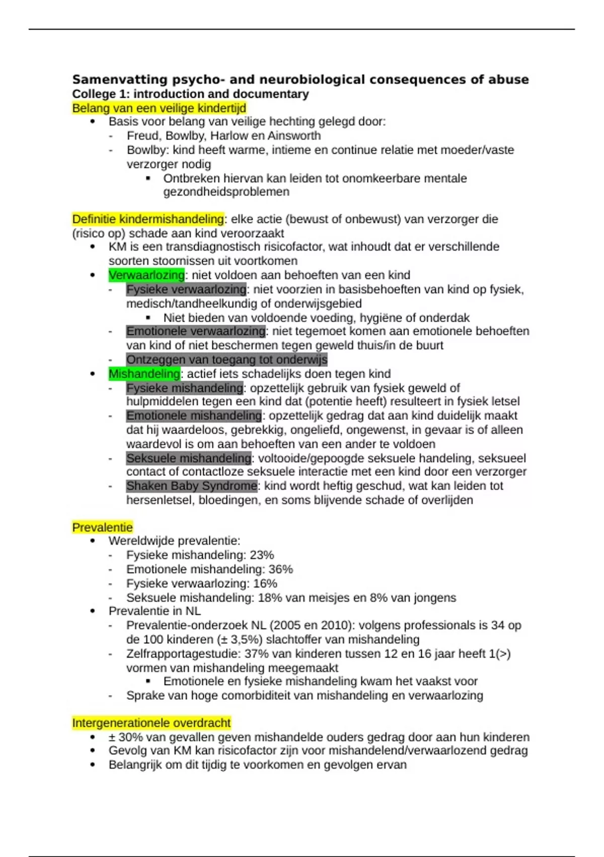 - Sprake van hoge comorbiditeit van mishandeling en verwaarlozing