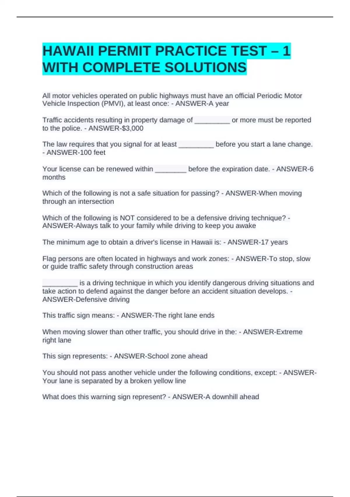 The minimum age to obtain a driver's license in Hawaii is: - ANSWER-17 years