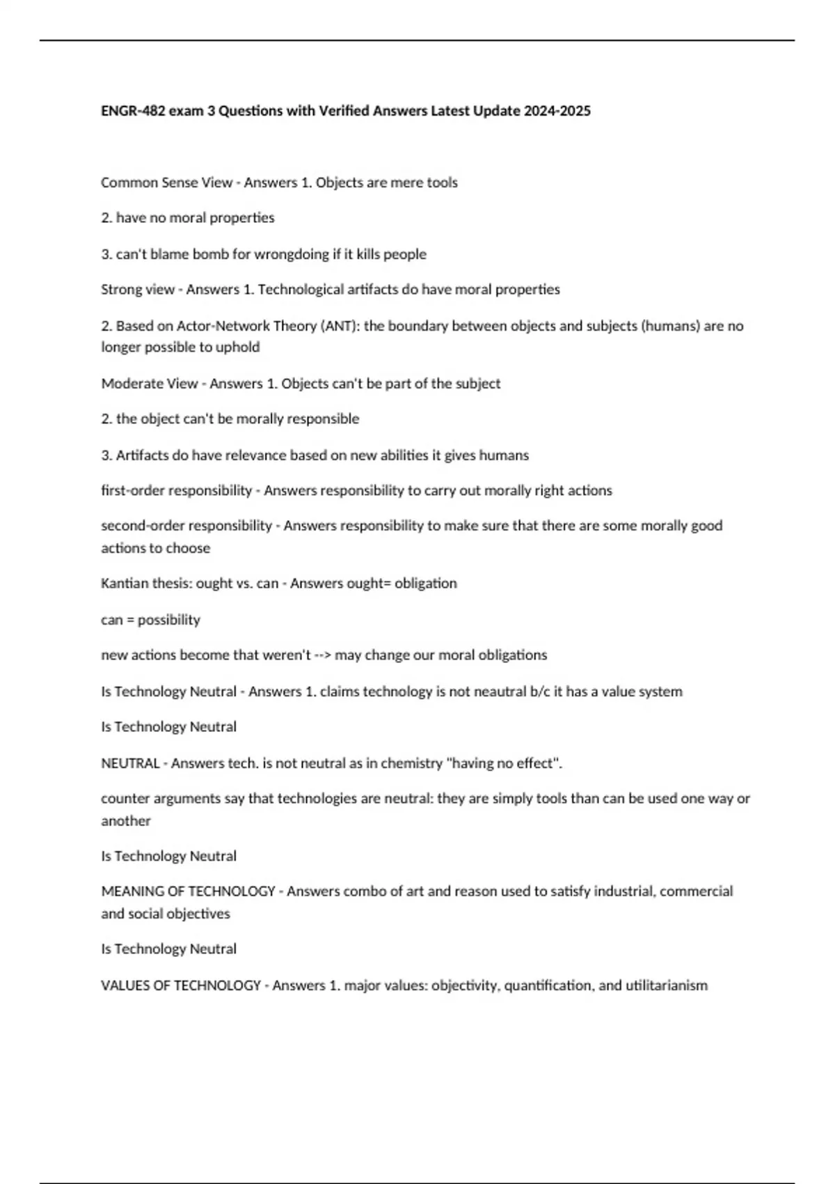 Strong view - Answers 1. Technological artifacts do have moral properties