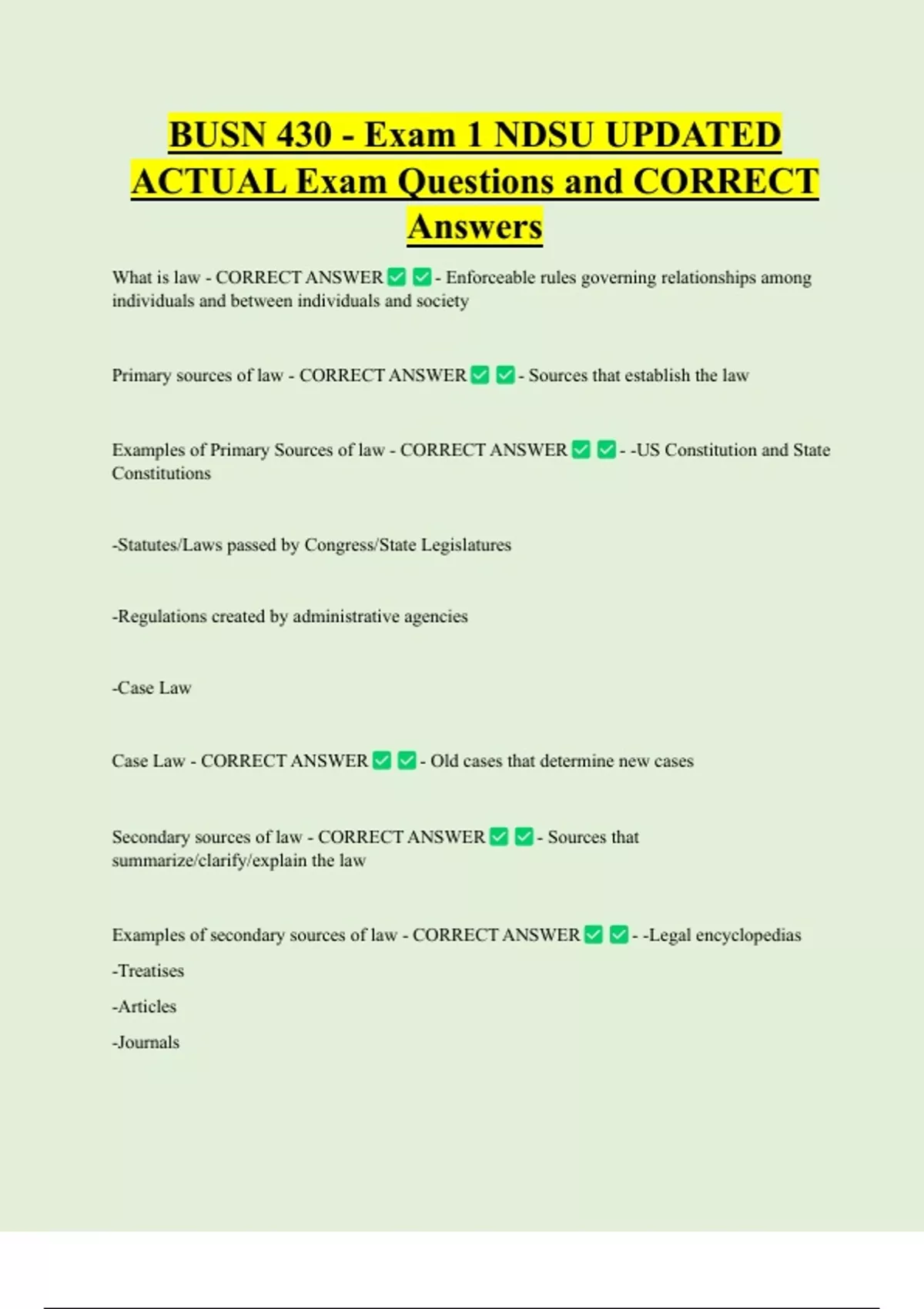 Primary sources of law - CORRECT ANSWER - Sources that establish the law