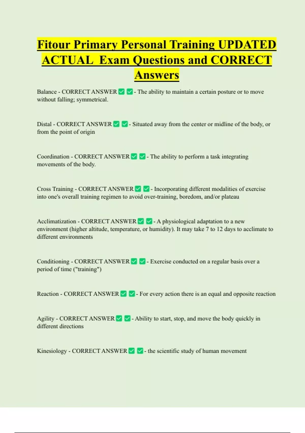 Fitour Primary Personal Training UPDATED ACTUAL Exam Questions and CORRECT Answers