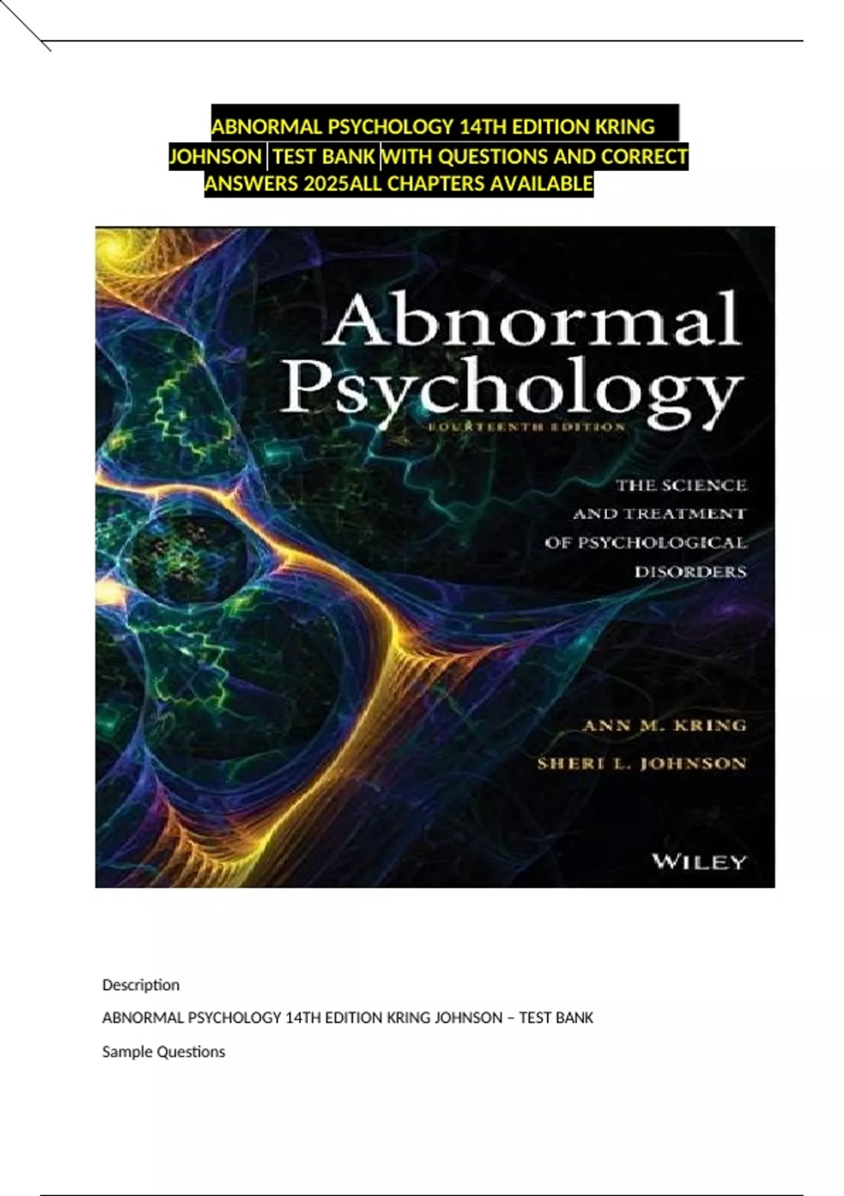 ABNORMAL PSYCHOLOGY 14TH EDITION KRING JOHNSON – TEST BANK