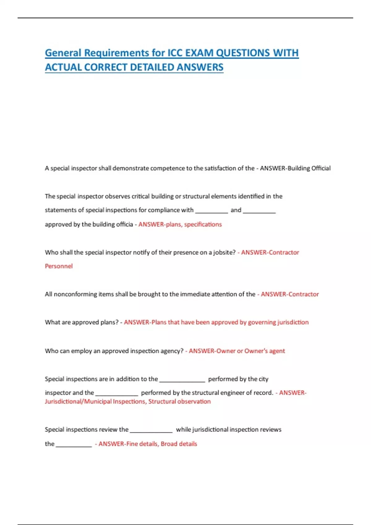 General Requirements for ICC EXAM QUESTIONS WITH