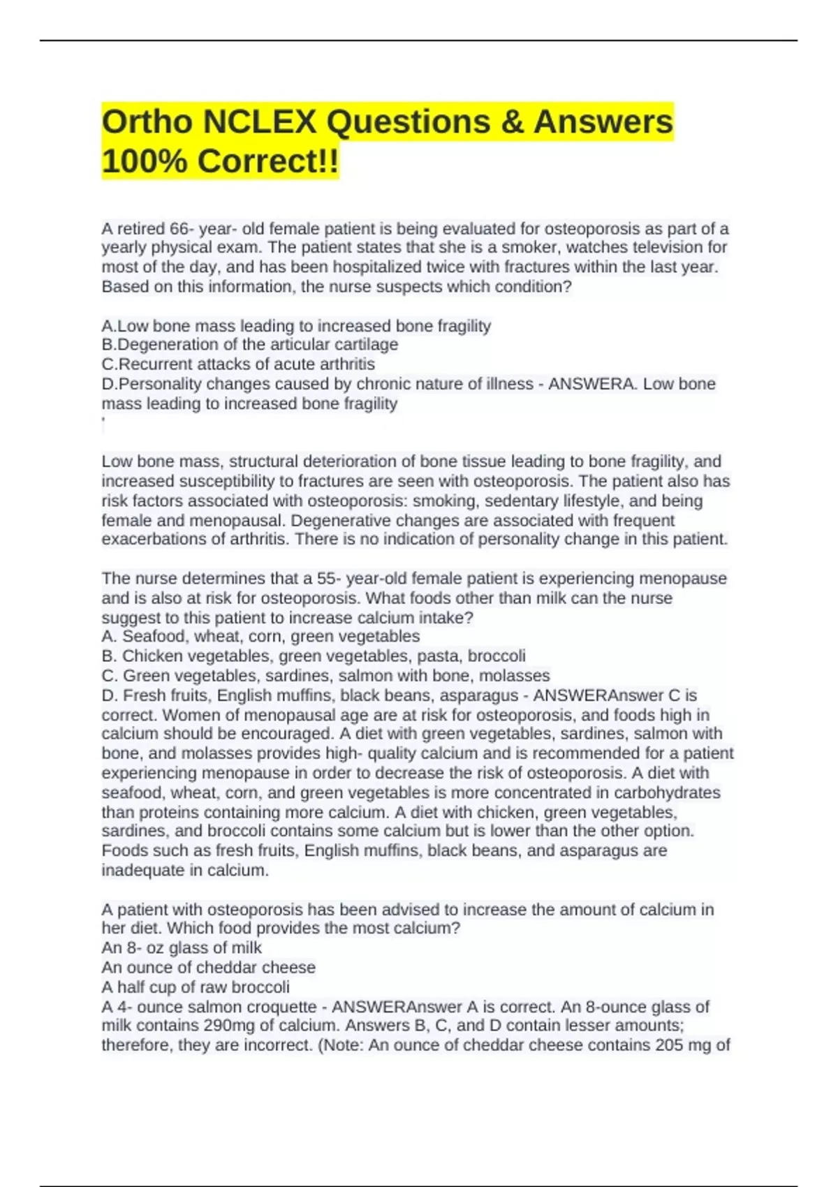 Ortho NCLEX Questions & Answers 100% Correct!!
