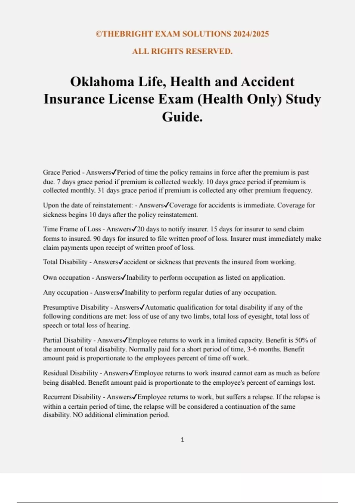 Insurance License Exam (Health Only) Study