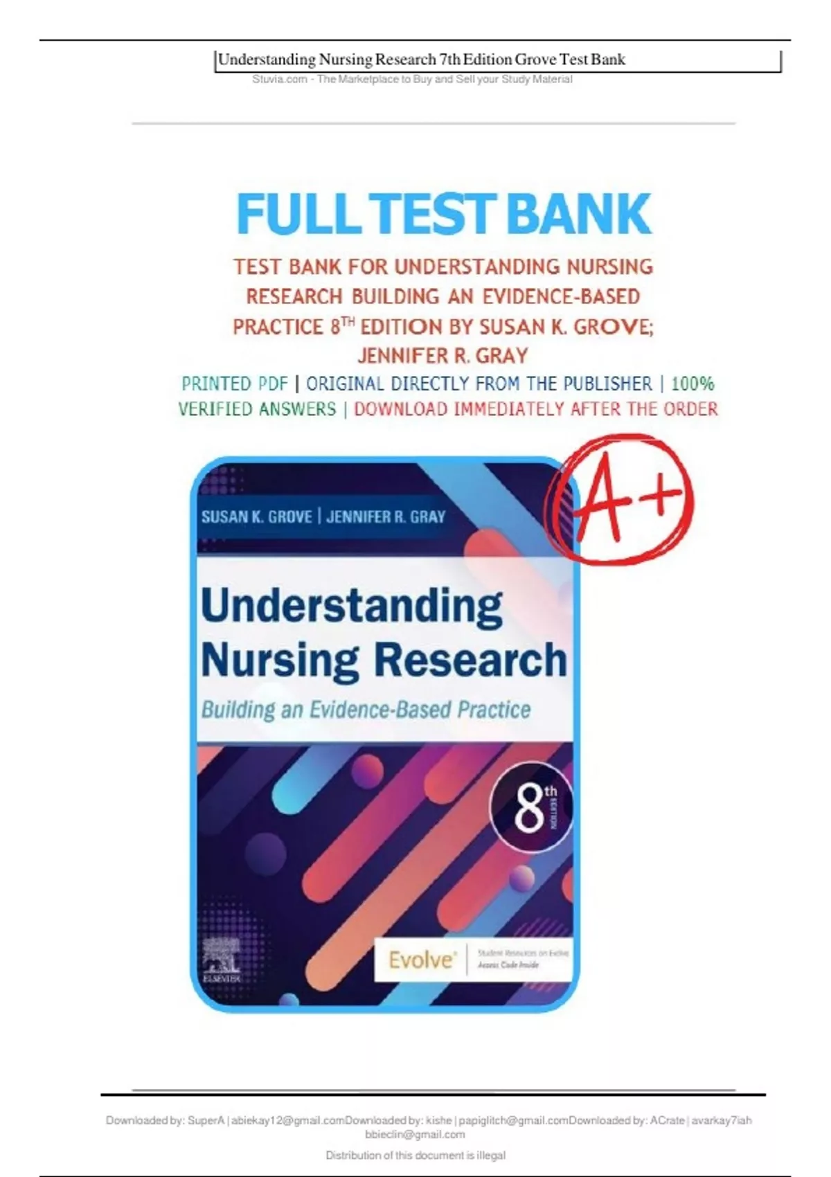 Test Bank For Understanding Nursing Research Building an Evidence-Based Practice, 8th Edition By Susan K. Grove, All Chapters 1-14, LATEST VERSION