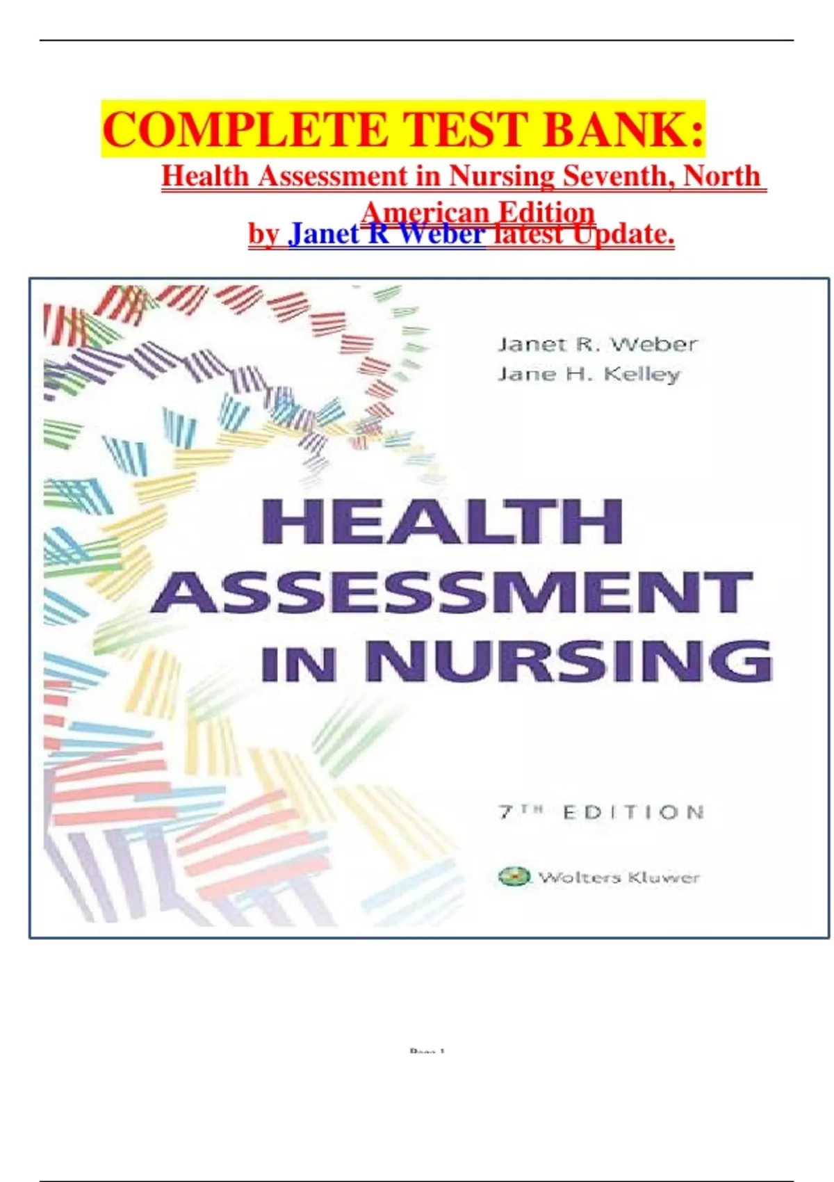 COMPLETE TEST BANK: Health Assessment in Nursing Seventh, North American Edition by Janet R Weber latest Update.