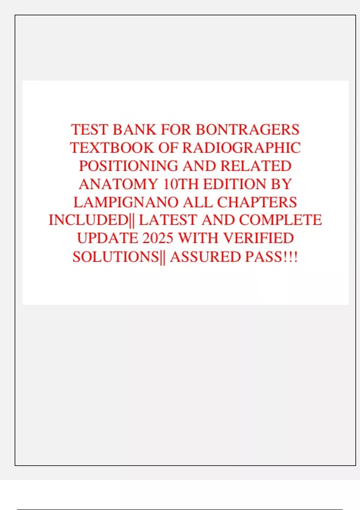 TEST BANK FOR BONTRAGERS TEXTBOOK OF RADIOGRAPHIC