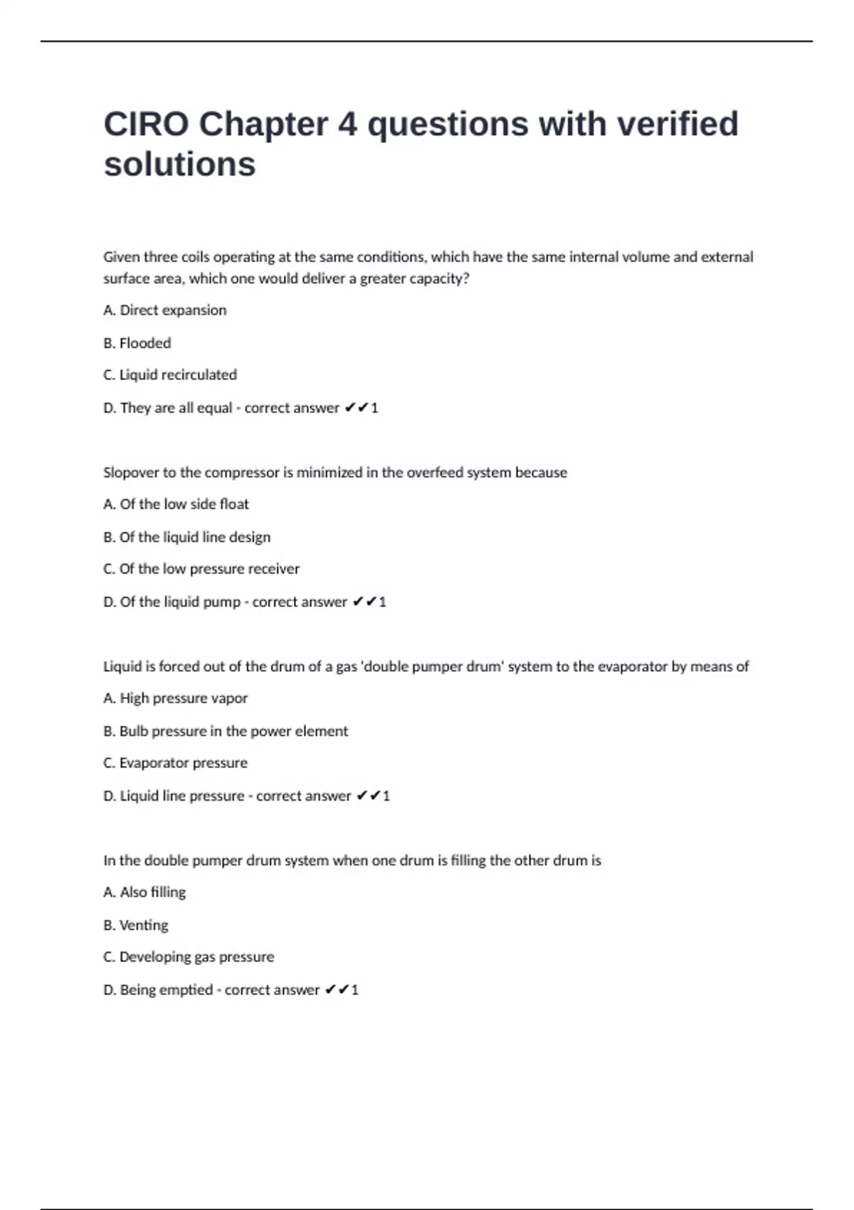 CIRO Chapter 4 questions with verified solutions