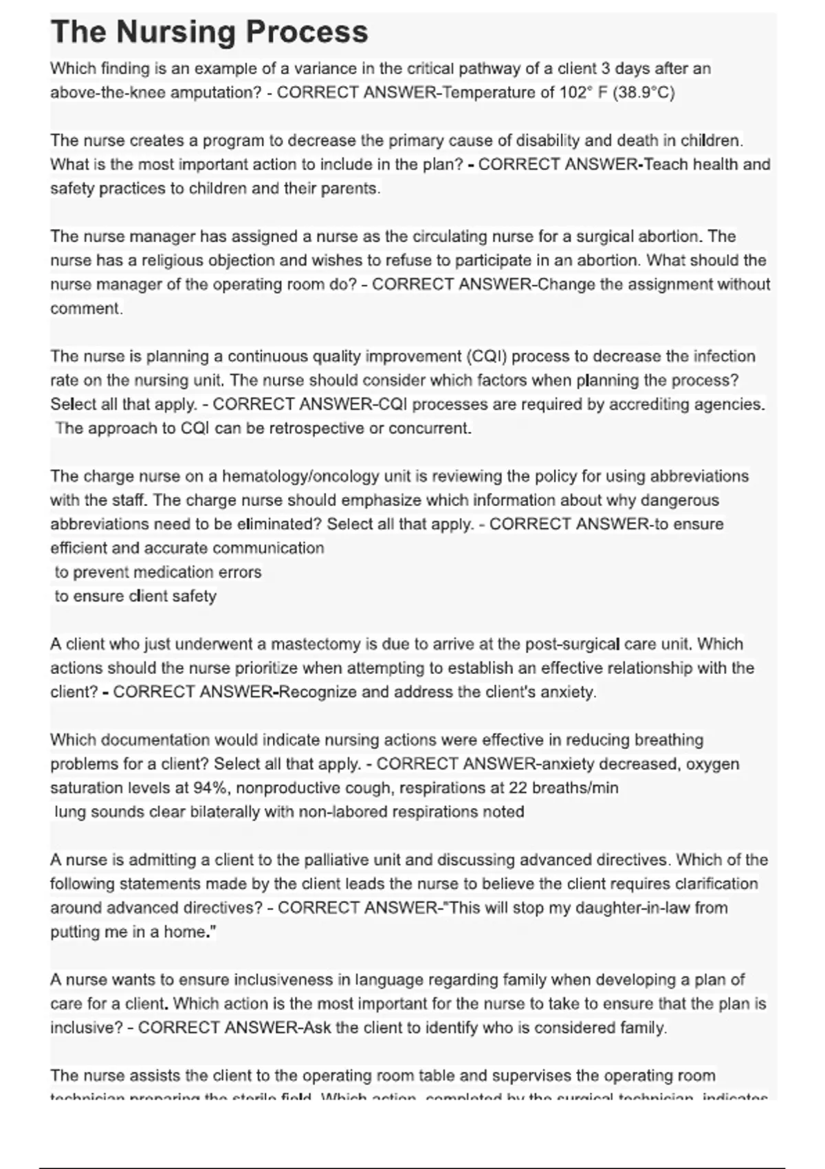 The Nursing Process Questions and Verified Answers |100% Correct | Complete solution | A+ Grade | Latest Update 2024 / 2025