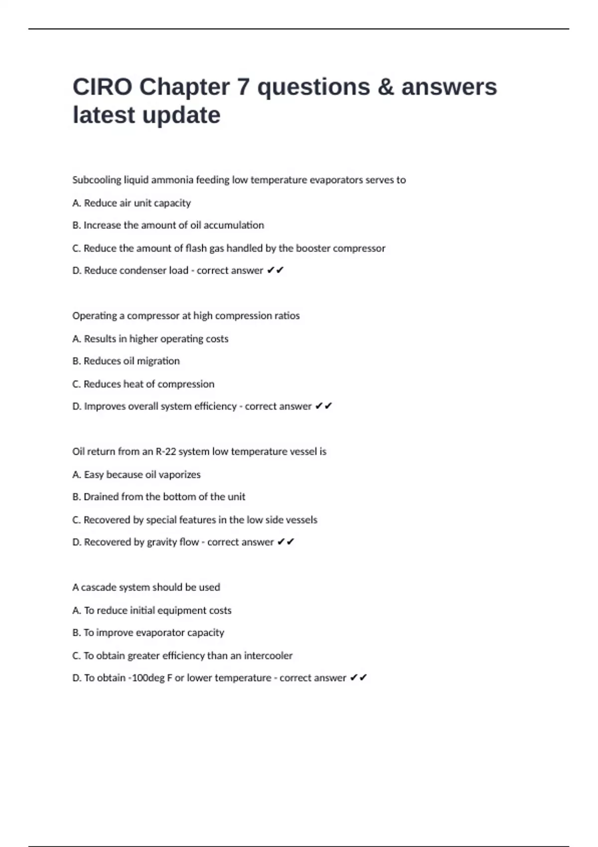 D. To obtain -100deg F or lower temperature - correct answer ✔✔