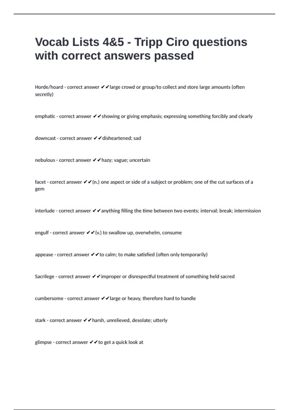 Vocab Lists 4&5 - Tripp Ciro questions with correct answers passed