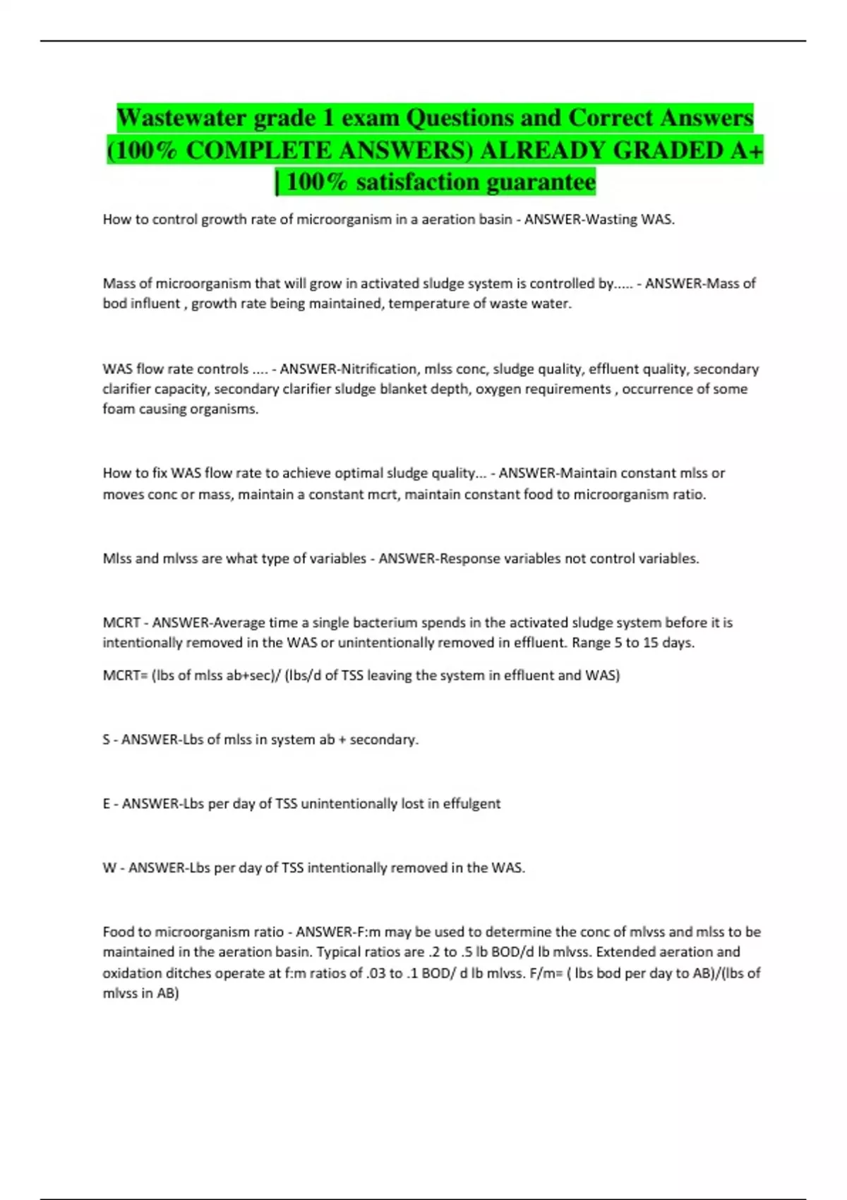 How to fix WAS flow rate to achieve optimal sludge quality... - ANSWER-Maintain constant mlss or