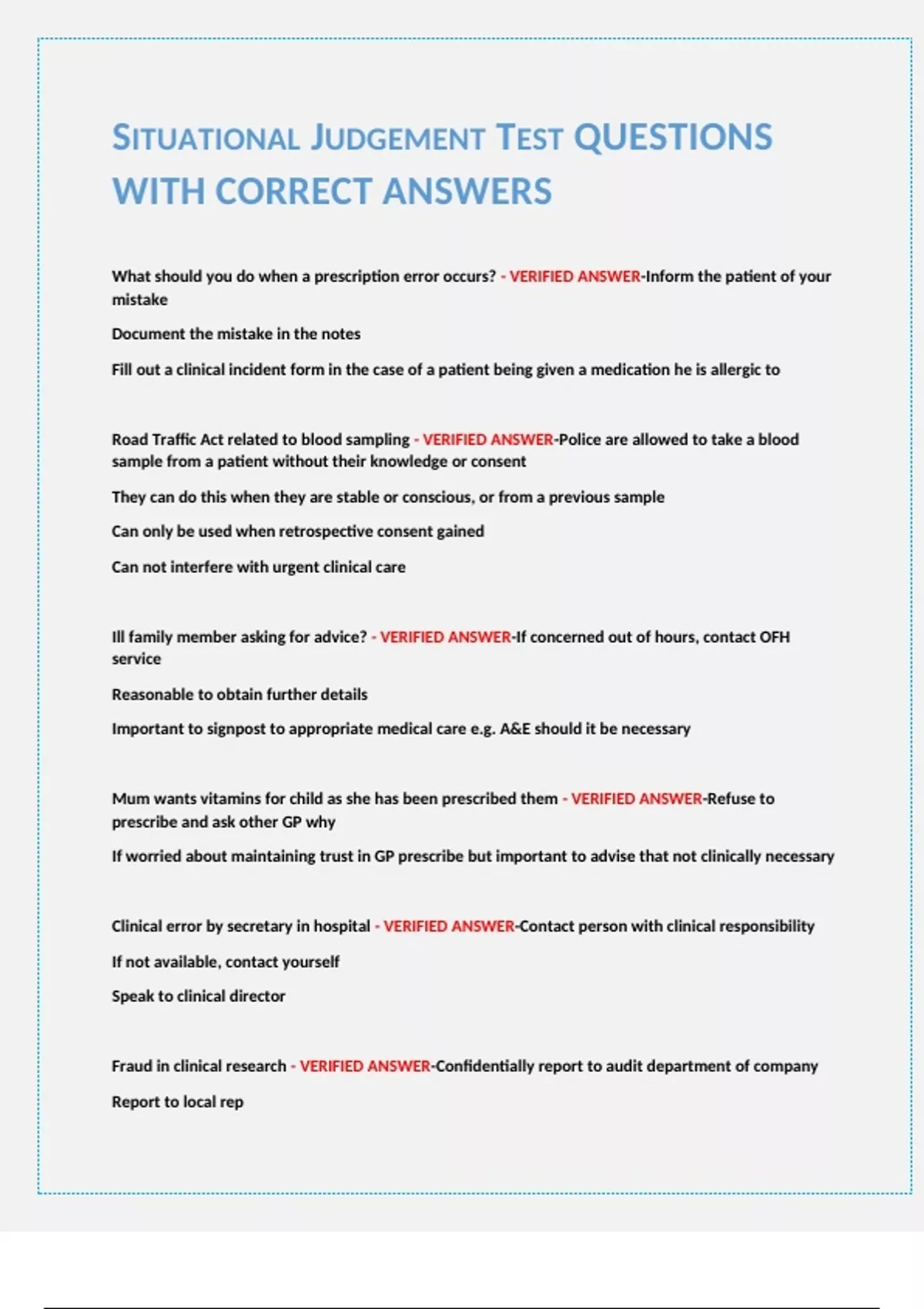 SITUATIONAL JUDGEMENT TEST QUESTIONS WITH CORRECT ANSWERS