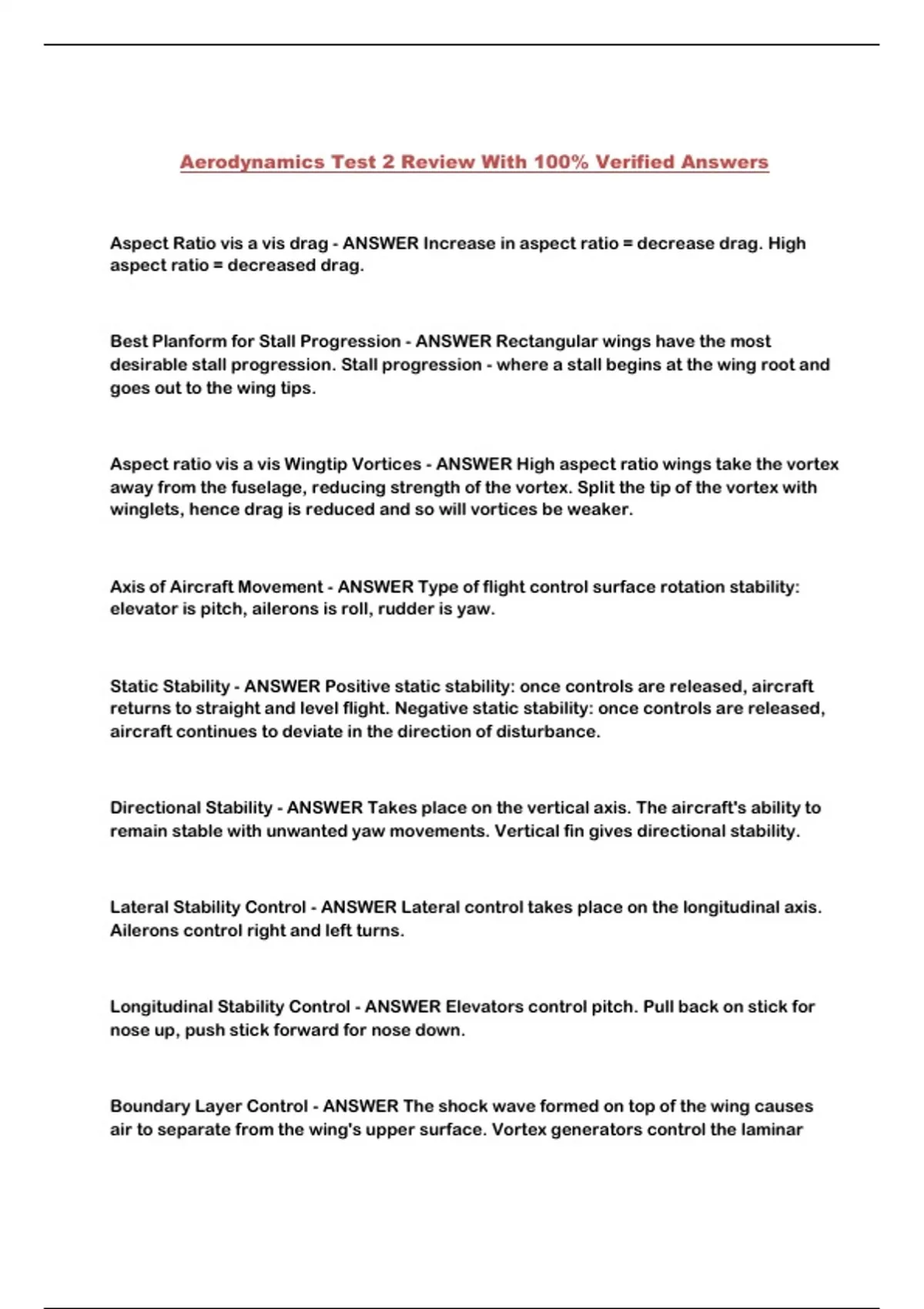 Aerodynamics Test 2 Review With 100% Verified Answers...