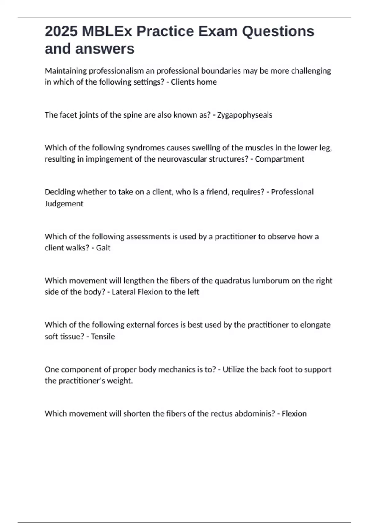 2025 MBLEx Practice Exam Questions and answers