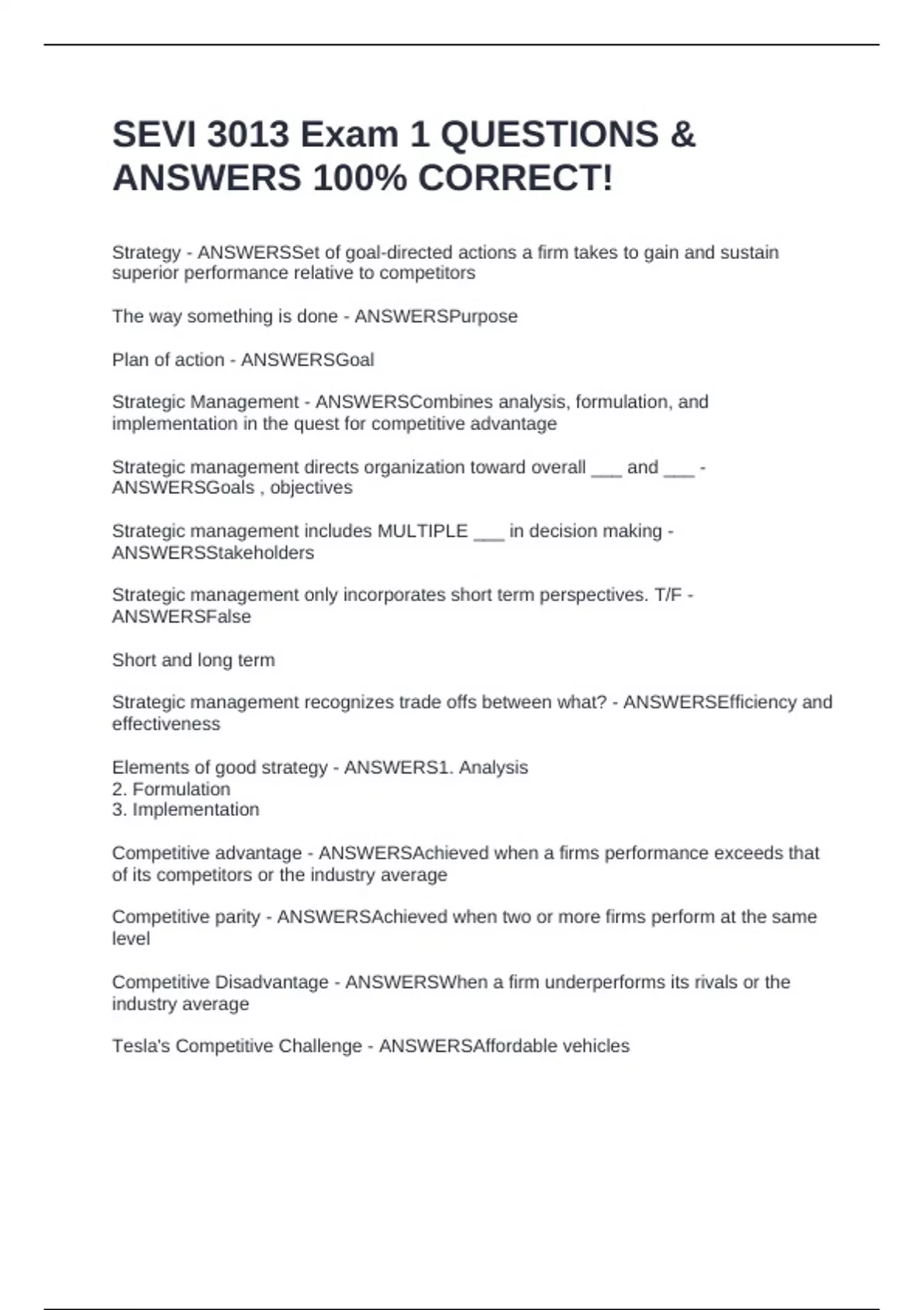 SEVI 3013 Exam 1 QUESTIONS & ANSWERS 100% CORRECT!