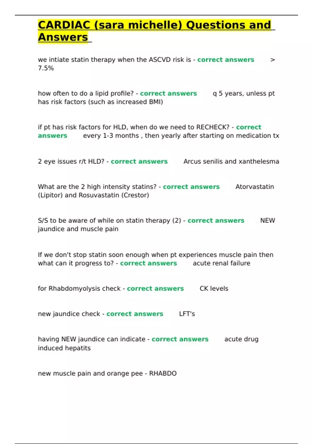 S/S to be aware of while on statin therapy (2) - correct answers✅✅NEW