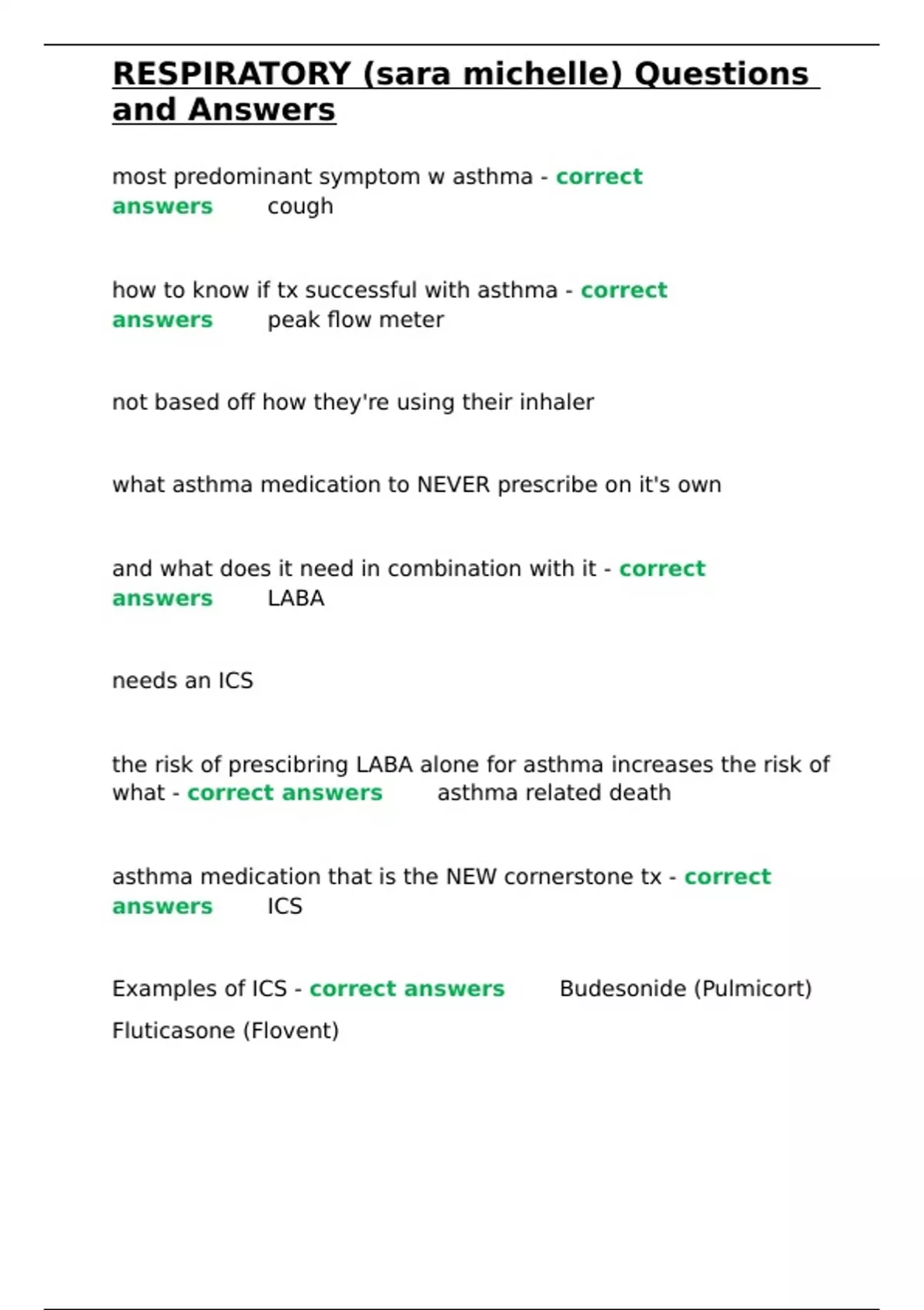 Examples of ICS - correct answers✅✅Budesonide (Pulmicort)