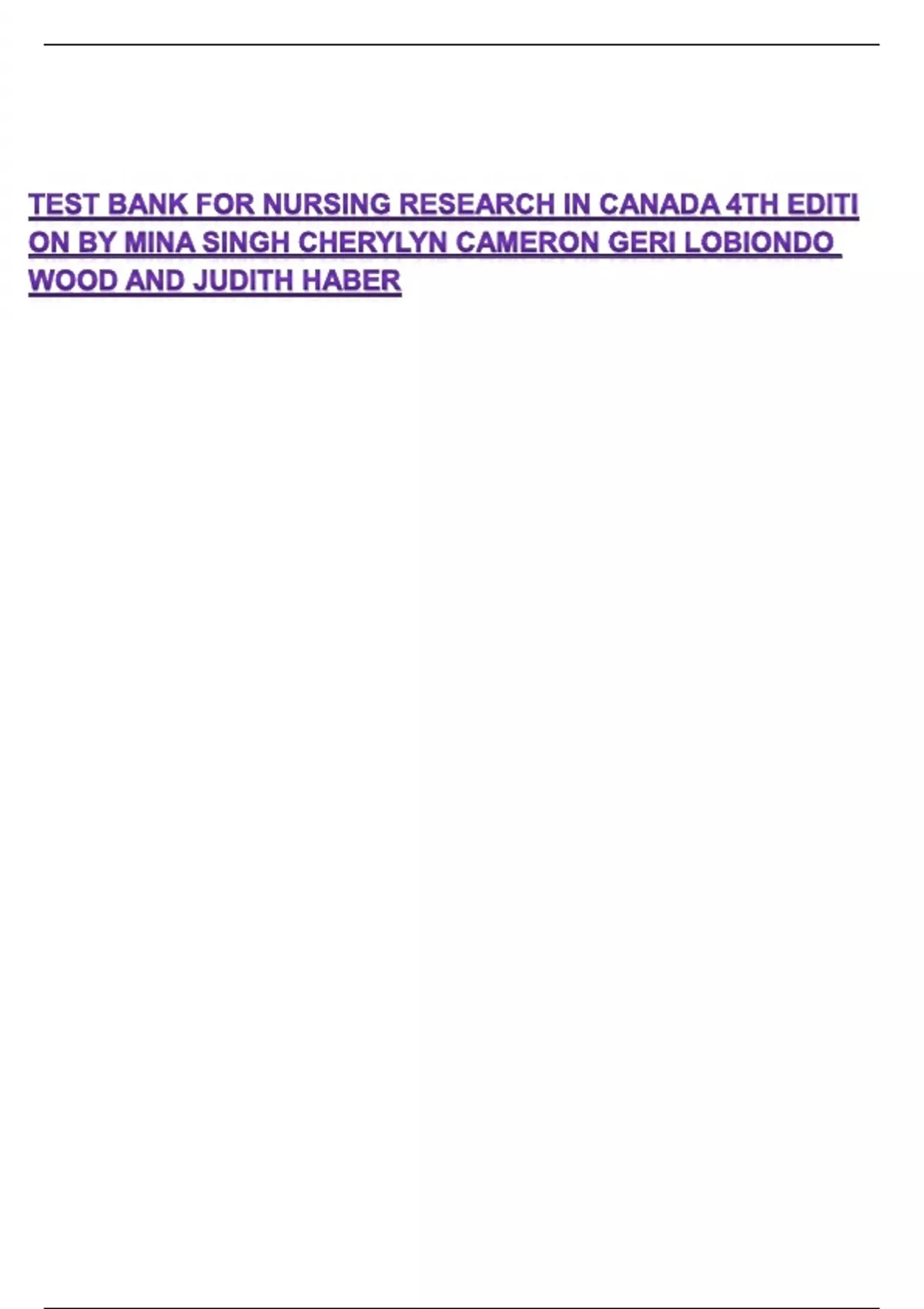 TEST BANK FOR NURSING RESEARCH IN CANADA 4TH EDITION BY MINA SINGH CHERYLYN CAMERON GERI LOBIONDO WOOD AND JUDITH HABER