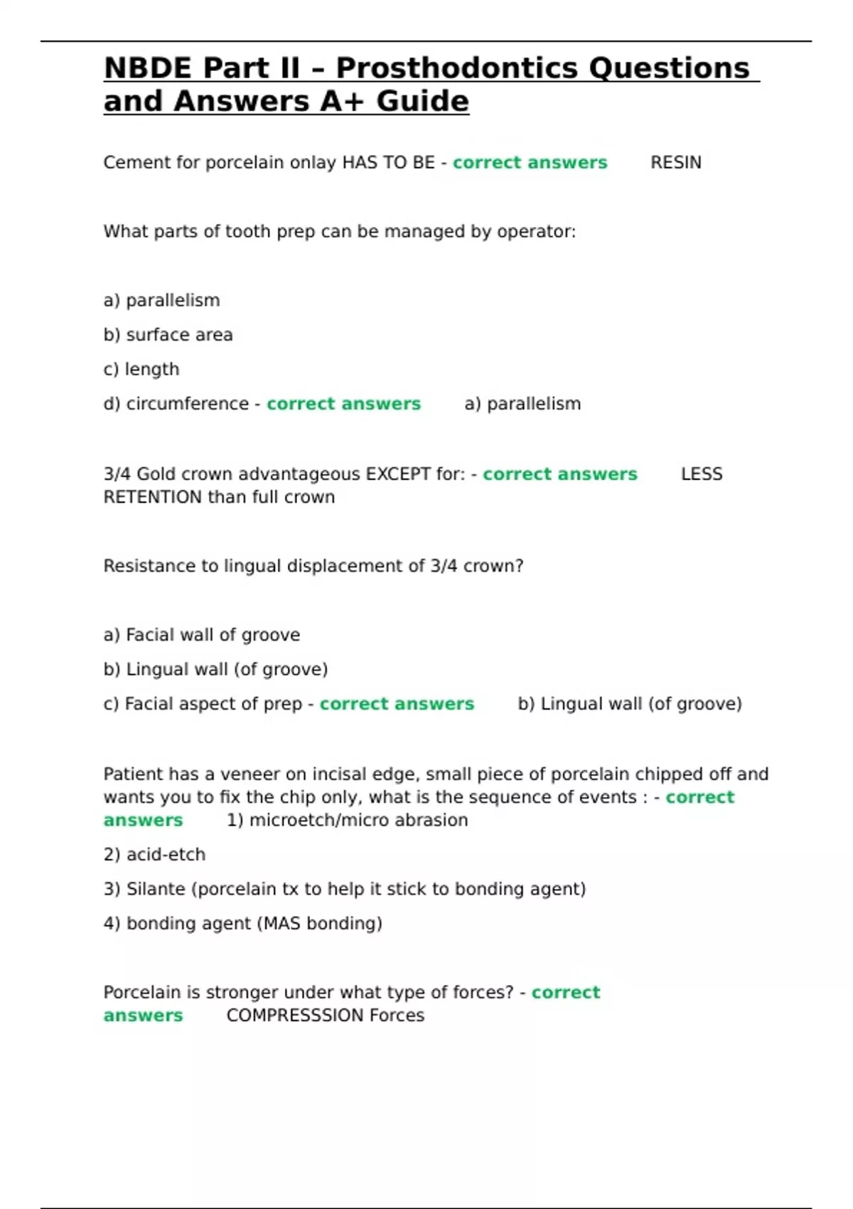 ,NBDE Part II – Prosthodontics Questions