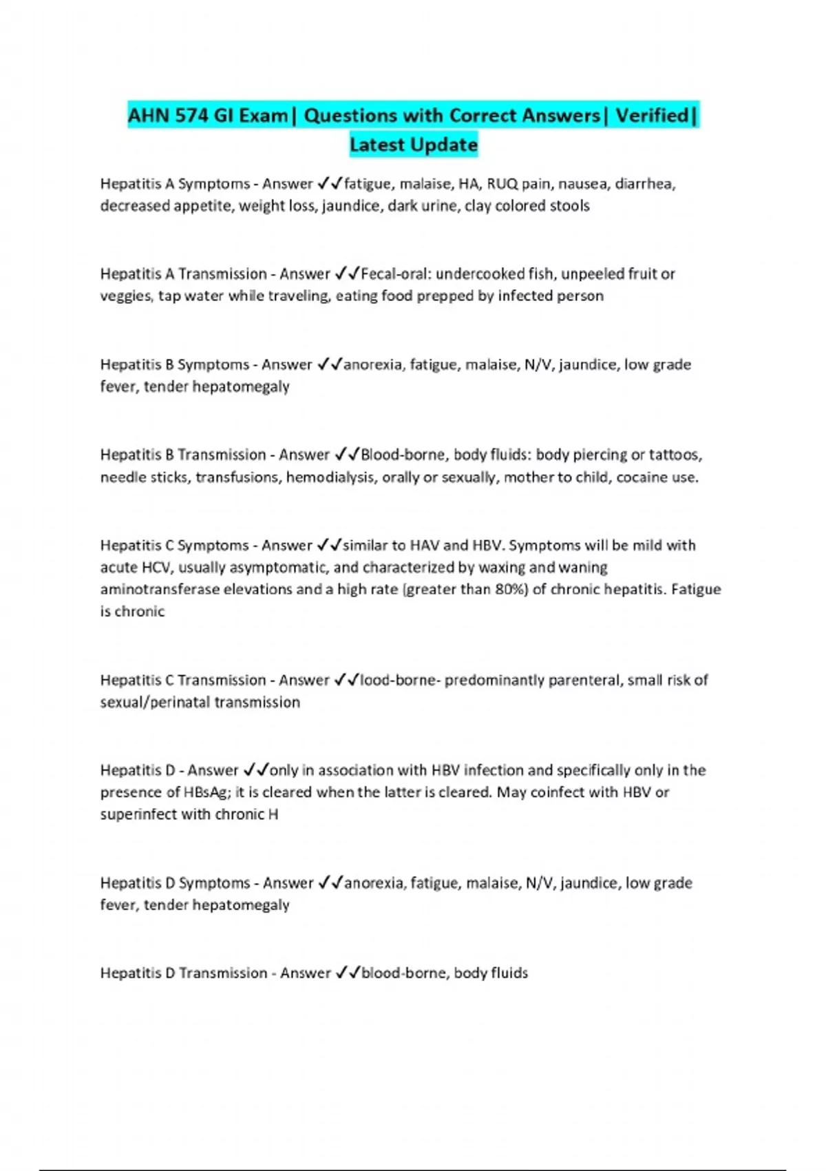 AHN 574 GI Exam| Questions with Correct Answers| Verified| Latest Update