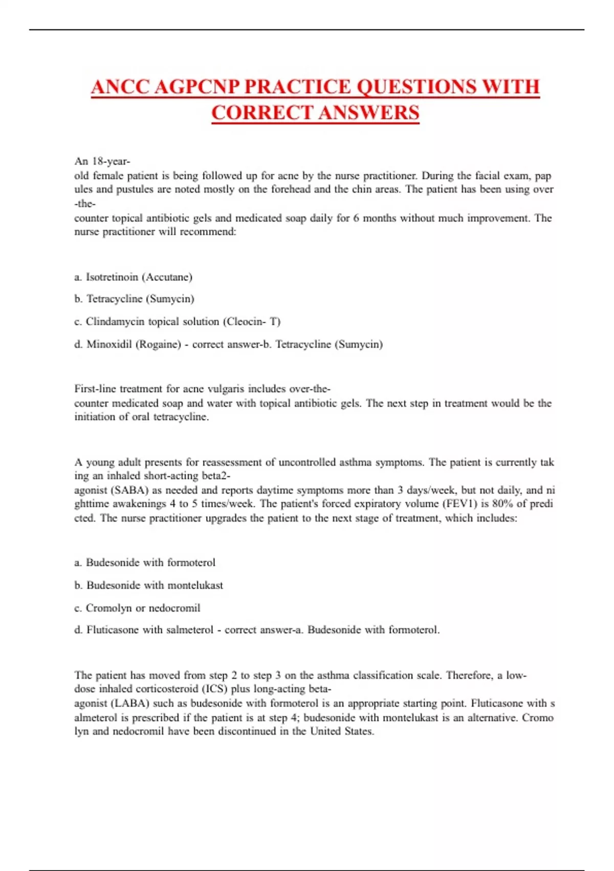 ANCC AGPCNP PRACTICE QUESTIONS WITH