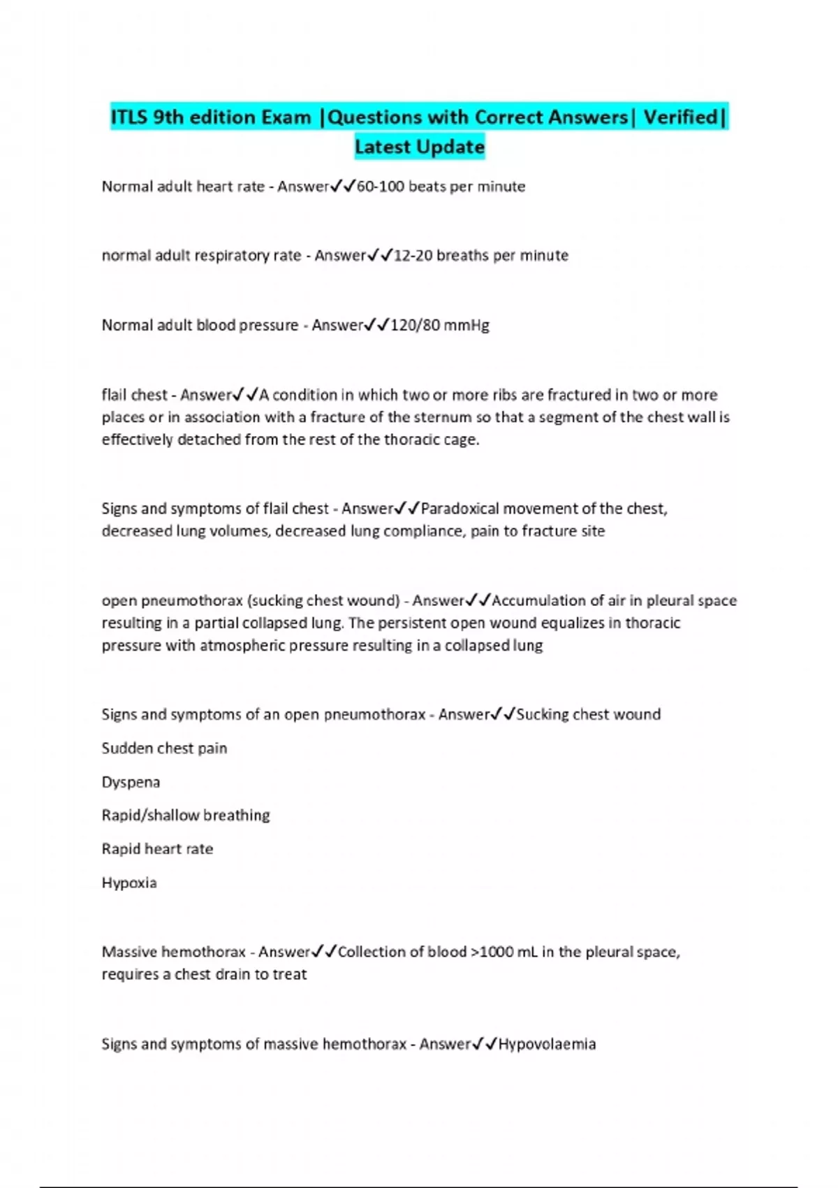 ITLS 9th edition Exam |Questions with Correct Answers| Verified| Latest Update