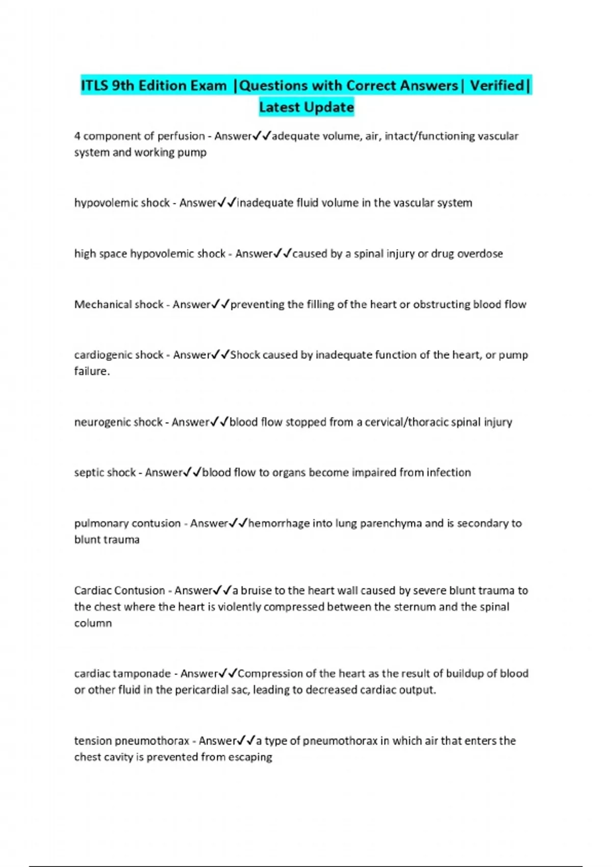 ITLS 9th Edition Exam |Questions with Correct Answers| Verified| Latest Update