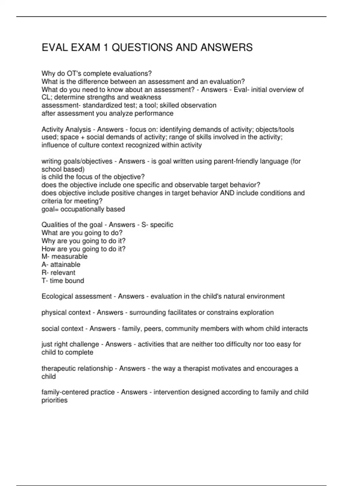 EVAL EXAM 1 QUESTIONS AND ANSWERS
