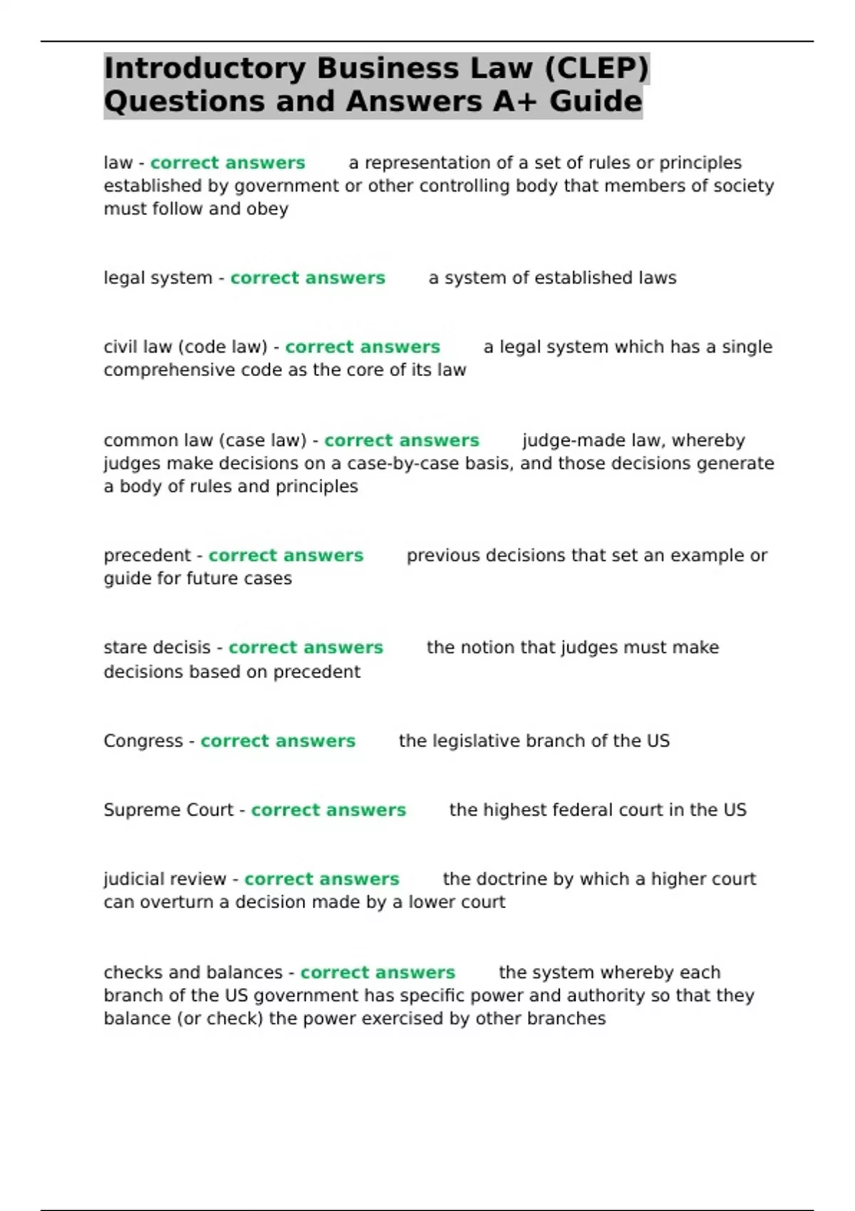 common law (case law) - correct answers✅✅judge-made law, whereby