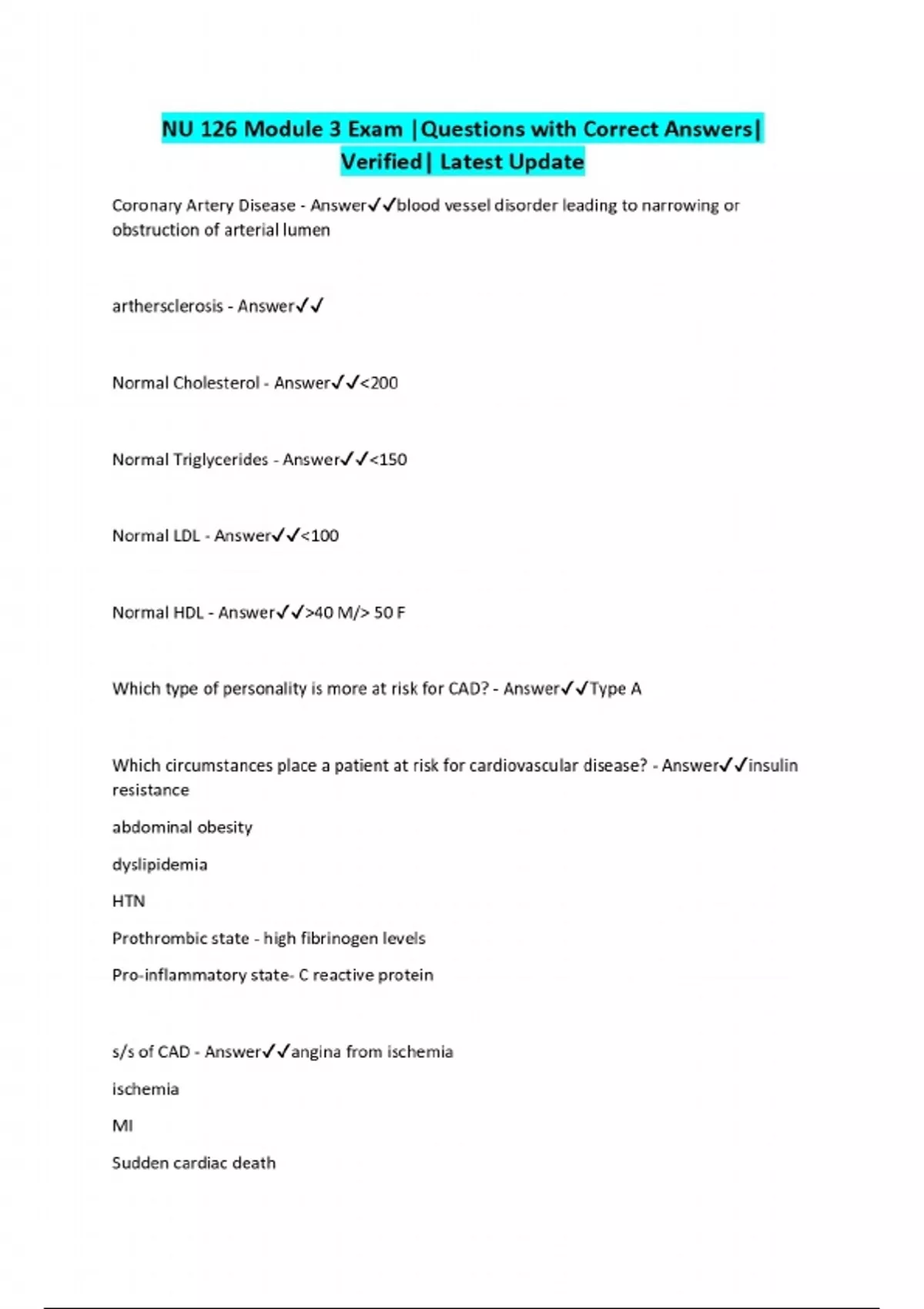 NU 126 Module 3 Exam |Questions with Correct Answers| Verified| Latest Update