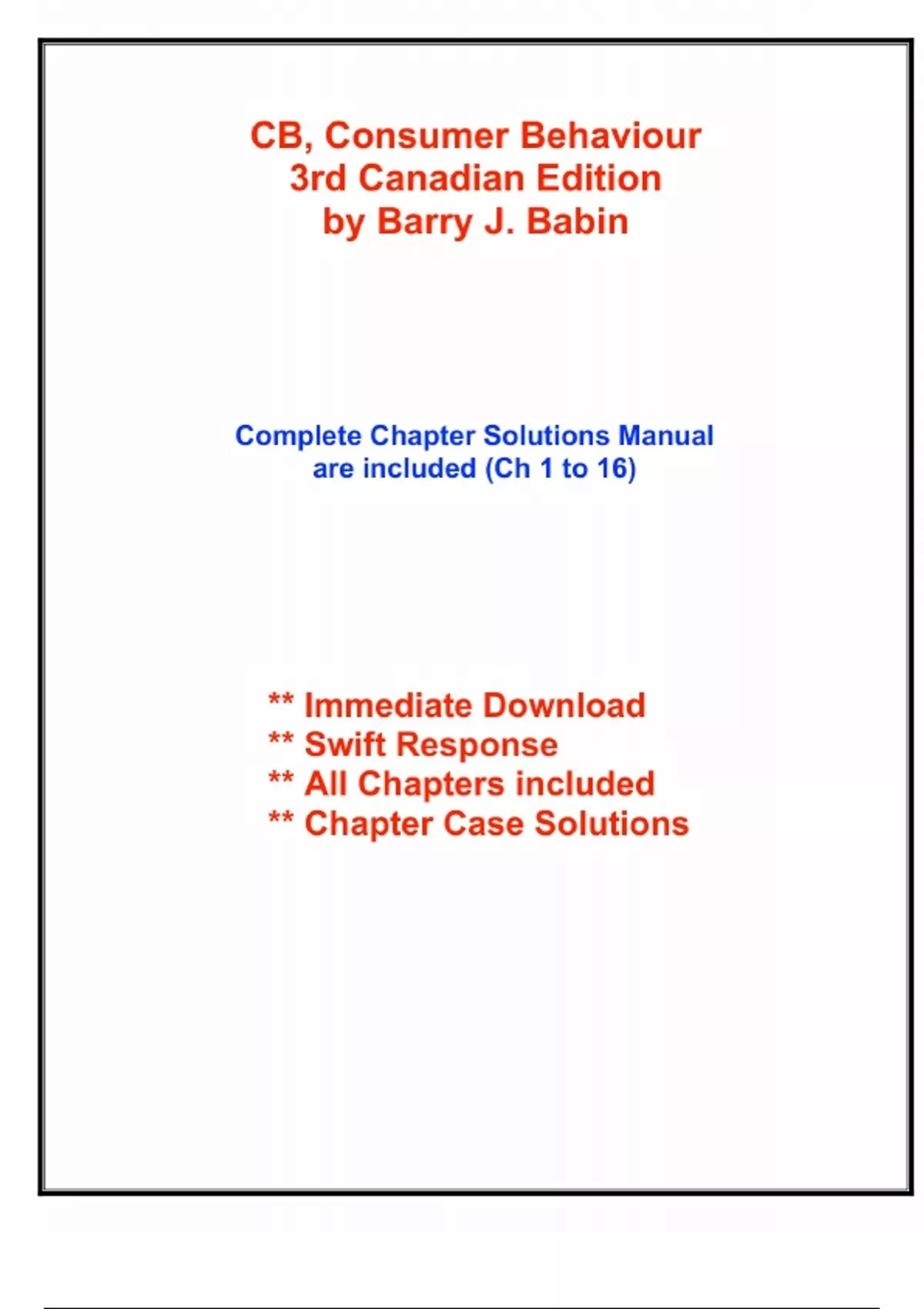 Solution Manual for CB, Consumer Behaviour 3rd Canadian Edition by Barry J. Babin, Chapter 1-16 | All Chapters