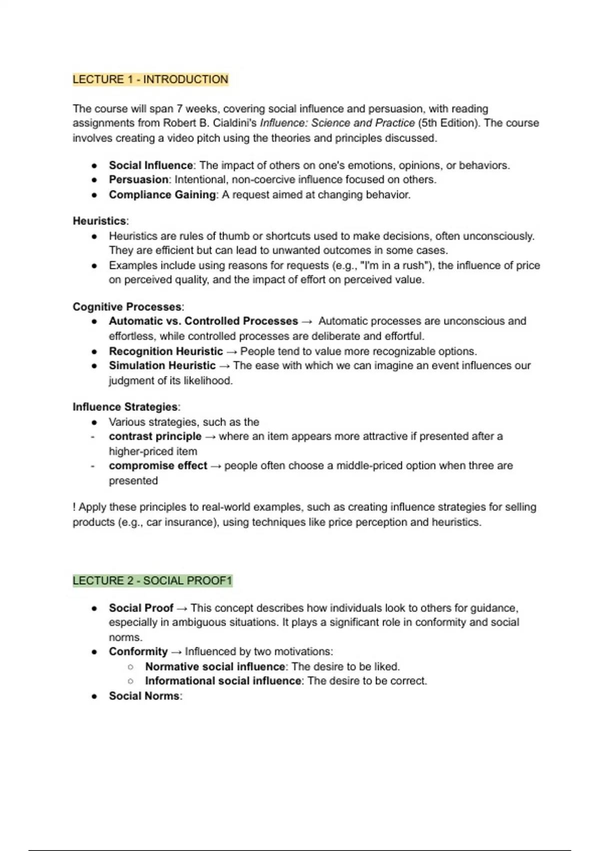The course will span 7 weeks, covering social influence and persuasion, with reading
