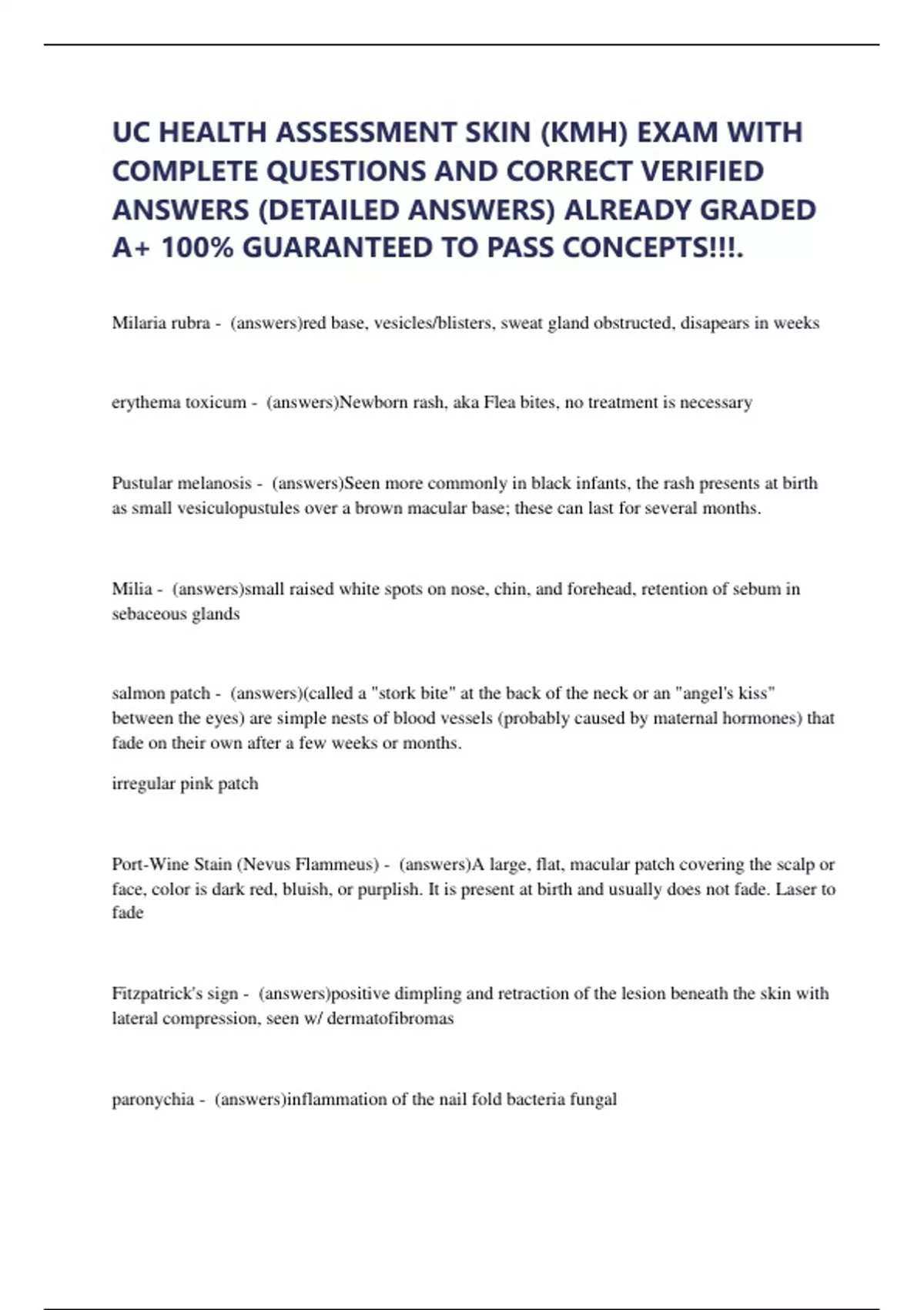 Milaria rubra - (answers)red base, vesicles/blisters, sweat gland obstructed, disapears in weeks